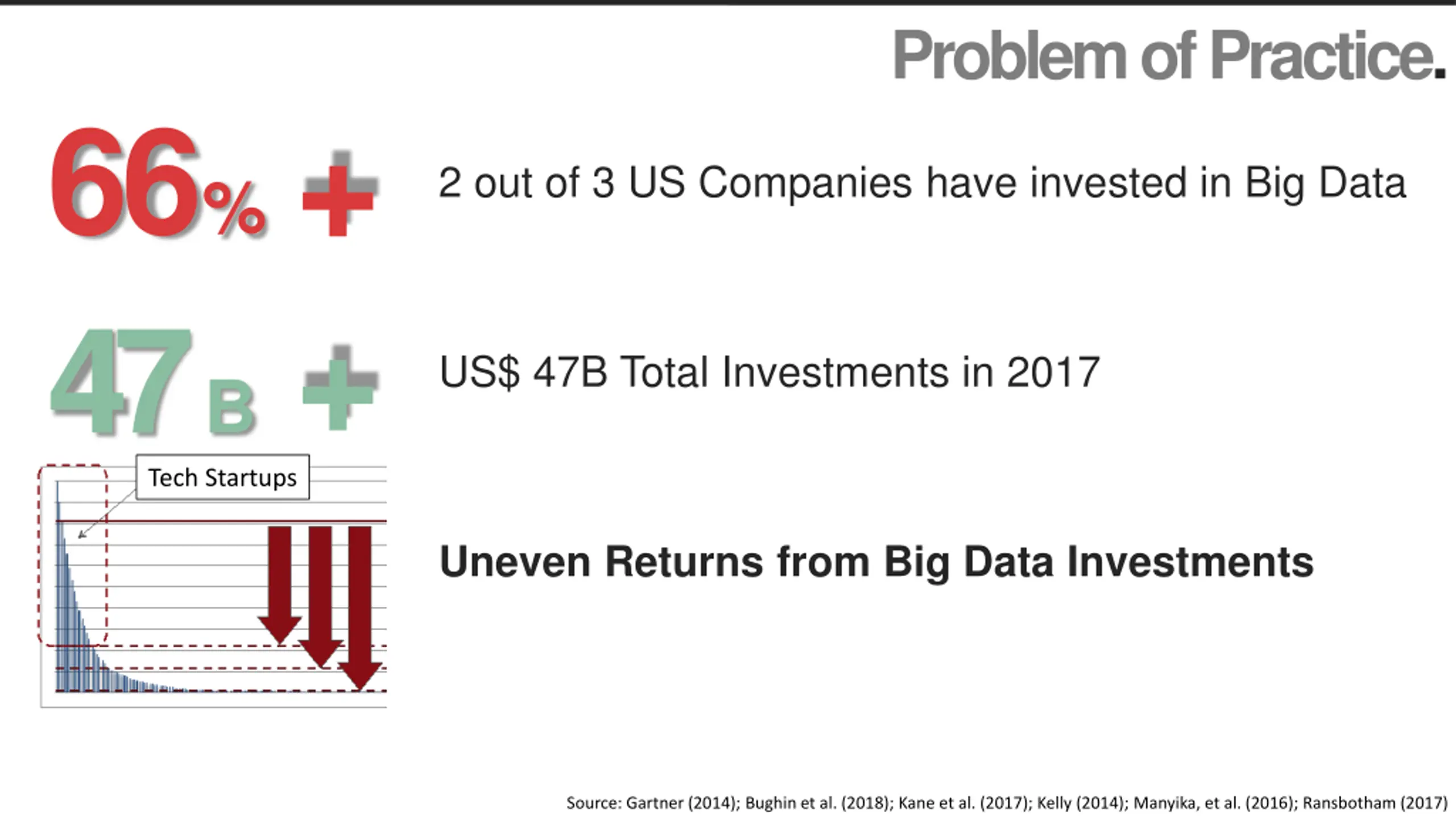 Problem of Practice. 6 6 %+ 2 out of 3 US Companies have invested in Big Data 47 B + Tech Startups US$ 47B Total Investments in 2017 Uneven Returns from Big Data Investments Source: Gartner (2014); Bughin et al. (2018); Kane et al. (2017); Kelly (2014); Manyika, et al. (2016); Ransbotham (2017)