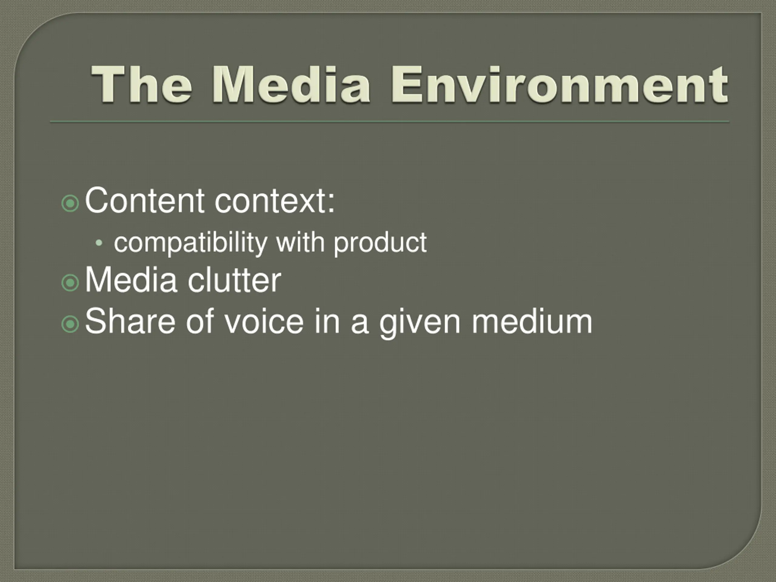 Content context: compatibility with product Media clutter Share of voice in a given medium