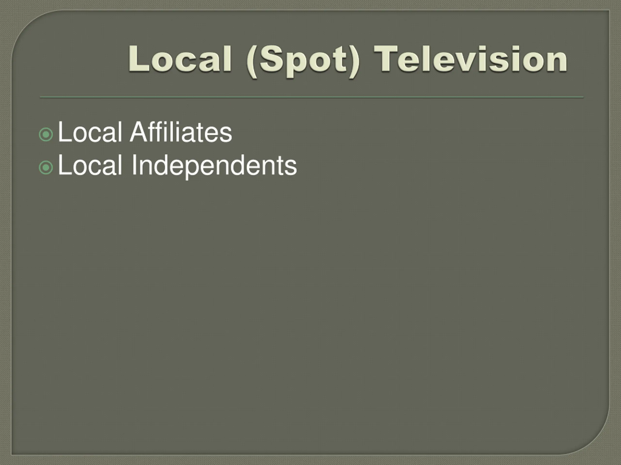 National Television Local Television Cable Television Syndicated Television Radio