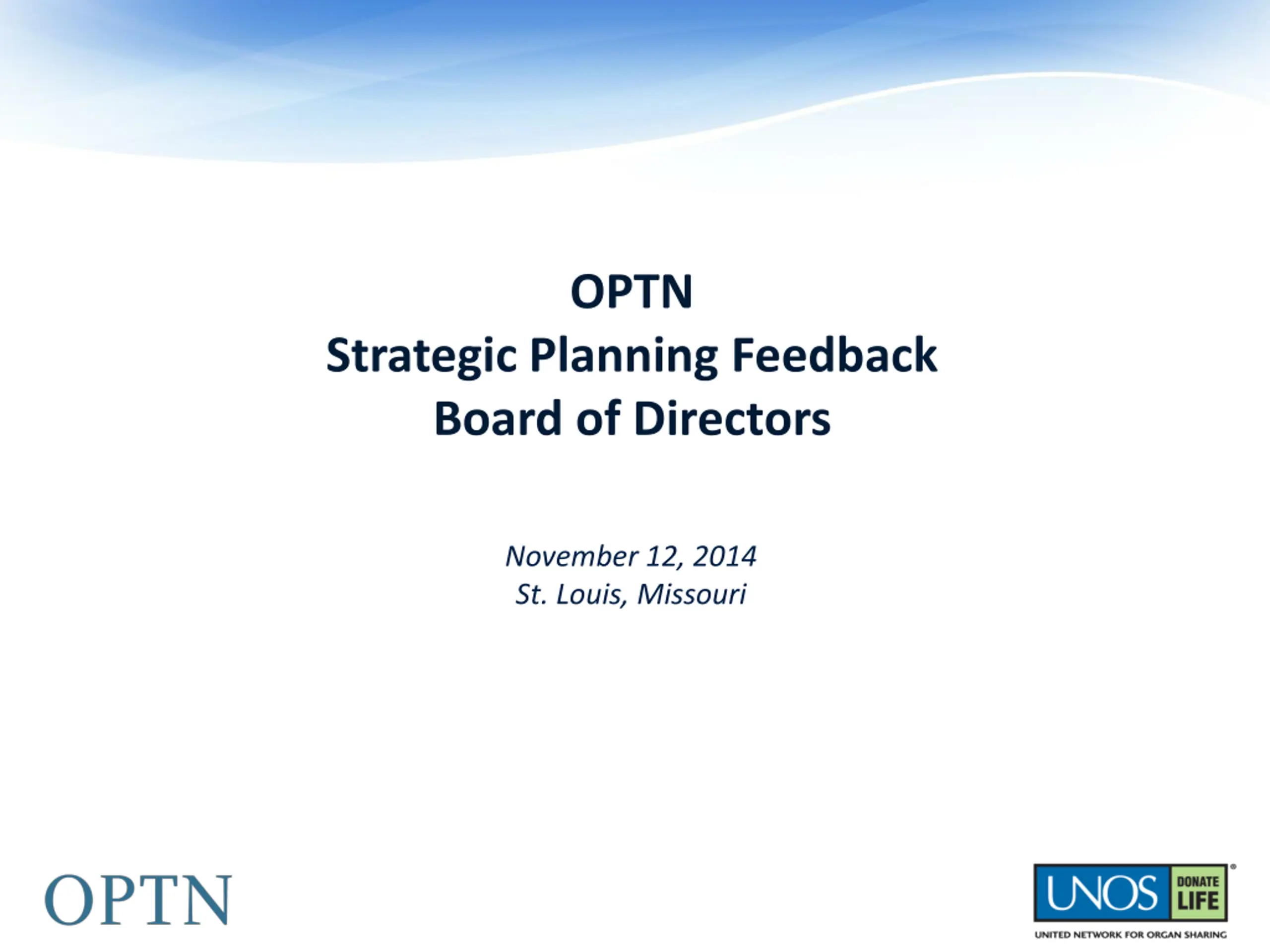 OPTN Strategic Planning Feedback Board of Directors November 12, 2014 St. Louis, Missouri