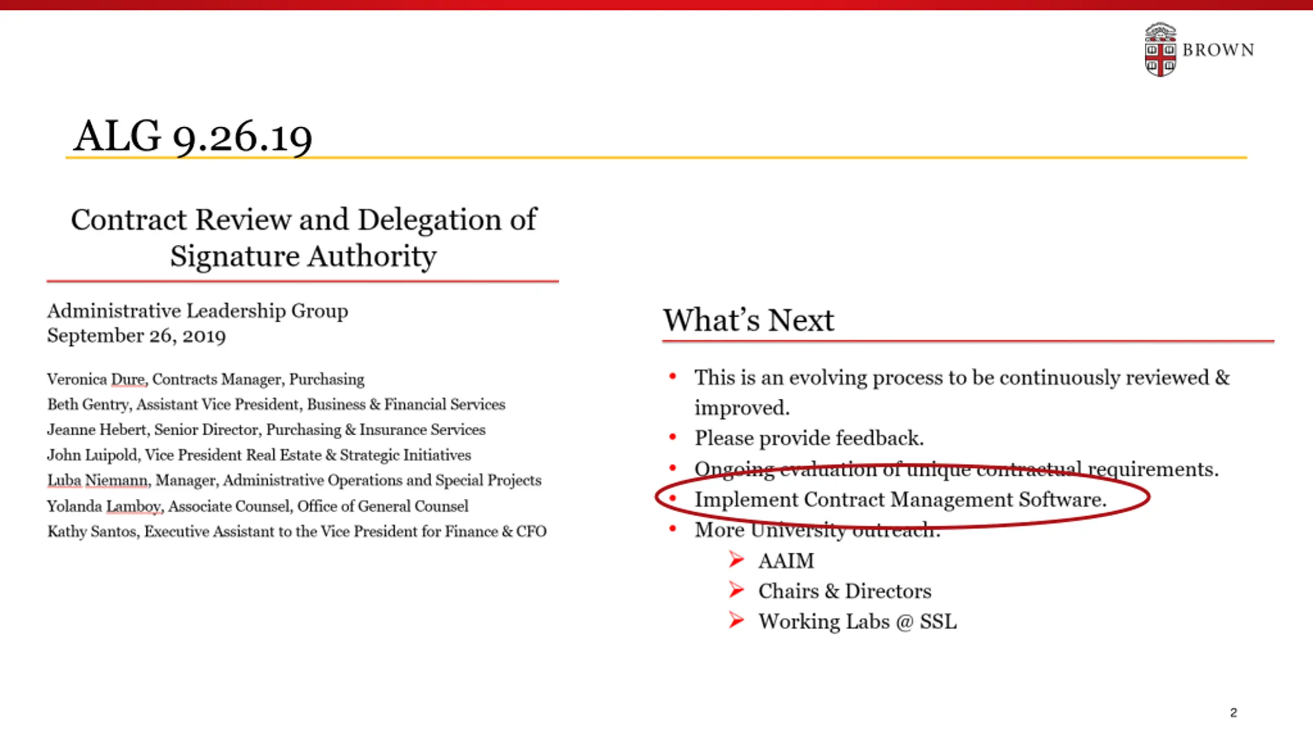 Jaggaer Initiative Contract Life Cycle Management SPCI CIS Workday OGC EVP F&A Risk Management, Audit & Compliance eProcurement SPCI CIS Workday EVP F&A Controller s Office 18