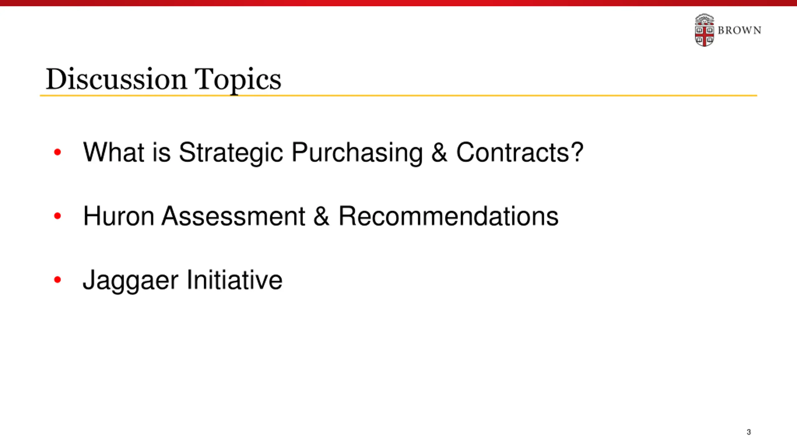 Discussion Topics What is Strategic Purchasing & Contracts? Huron Assessment & Recommendations Jaggaer Initiative 3