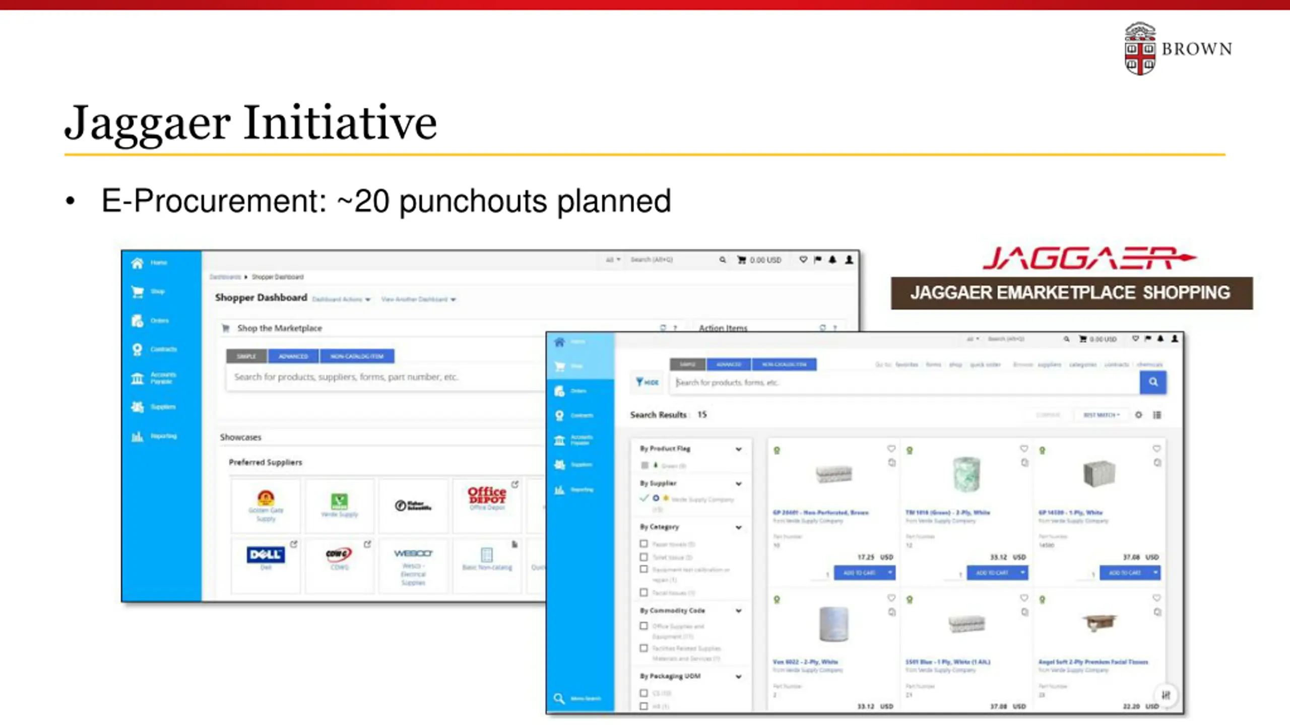 Jaggaer Initiative E-Procurement: ~20 punchouts planned 19
