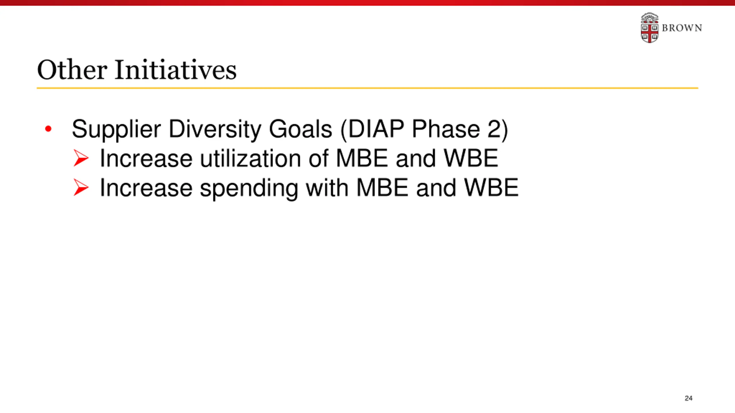 Other Initiatives Supplier Diversity Goals (DIAP Phase 2) Increase utilization of MBE and WBE Increase spending with MBE and WBE 24