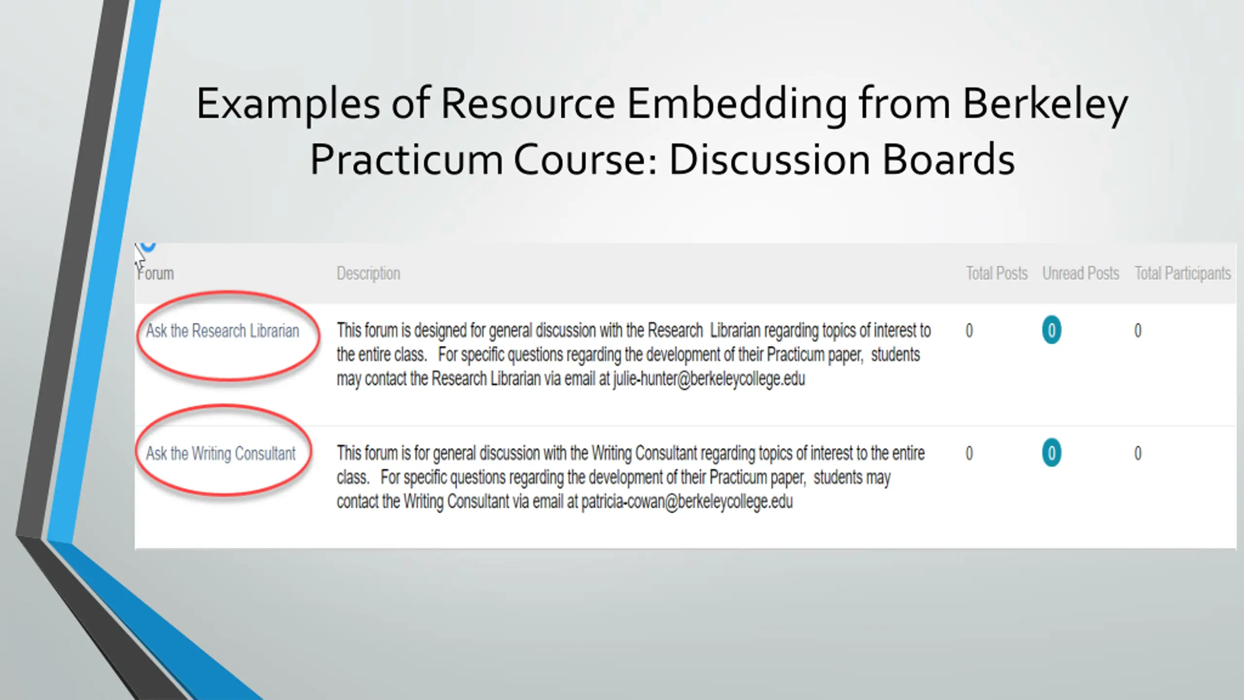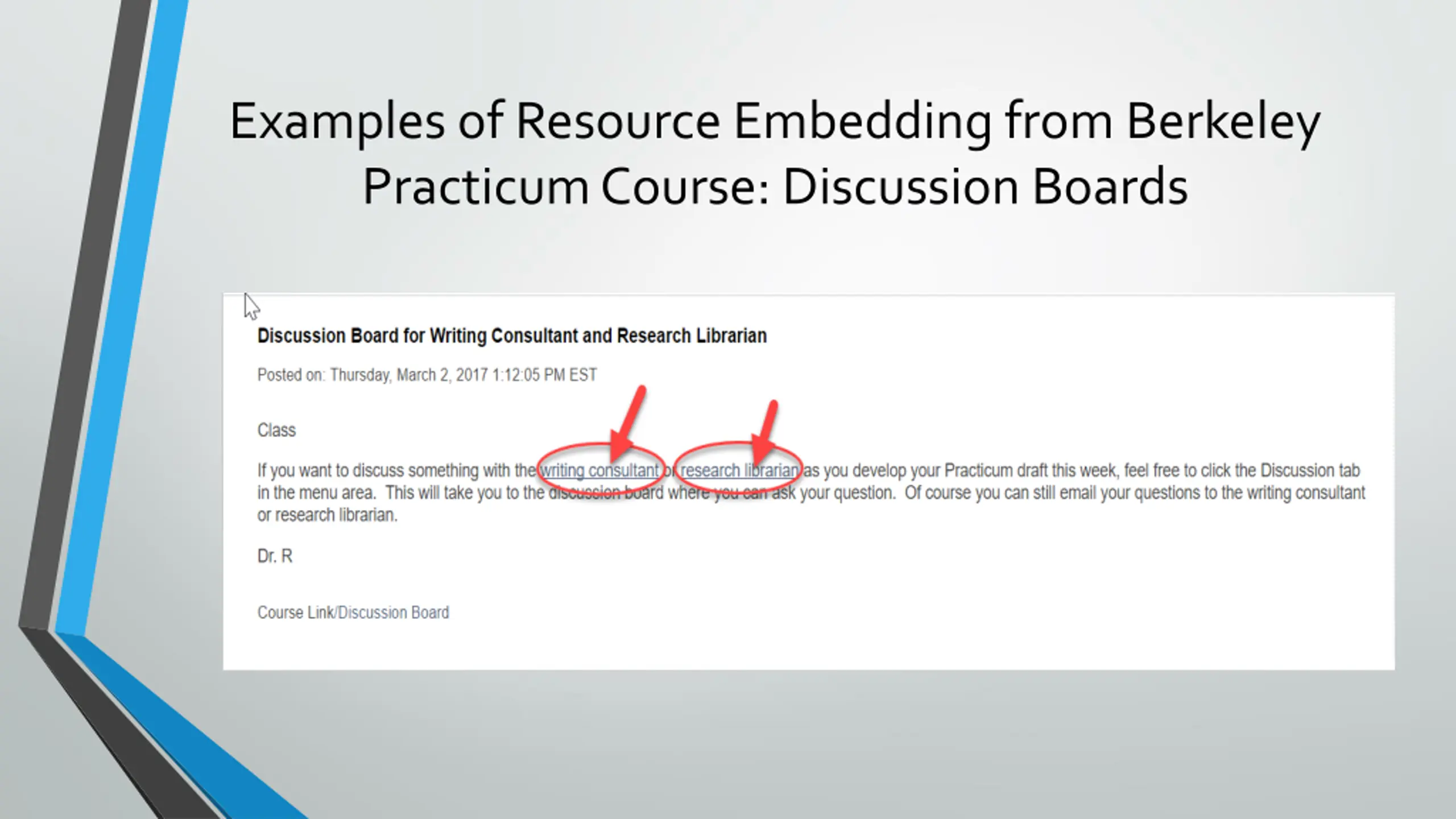 Examples of Resource Embedding from Berkeley Practicum Course: Discussion Boards