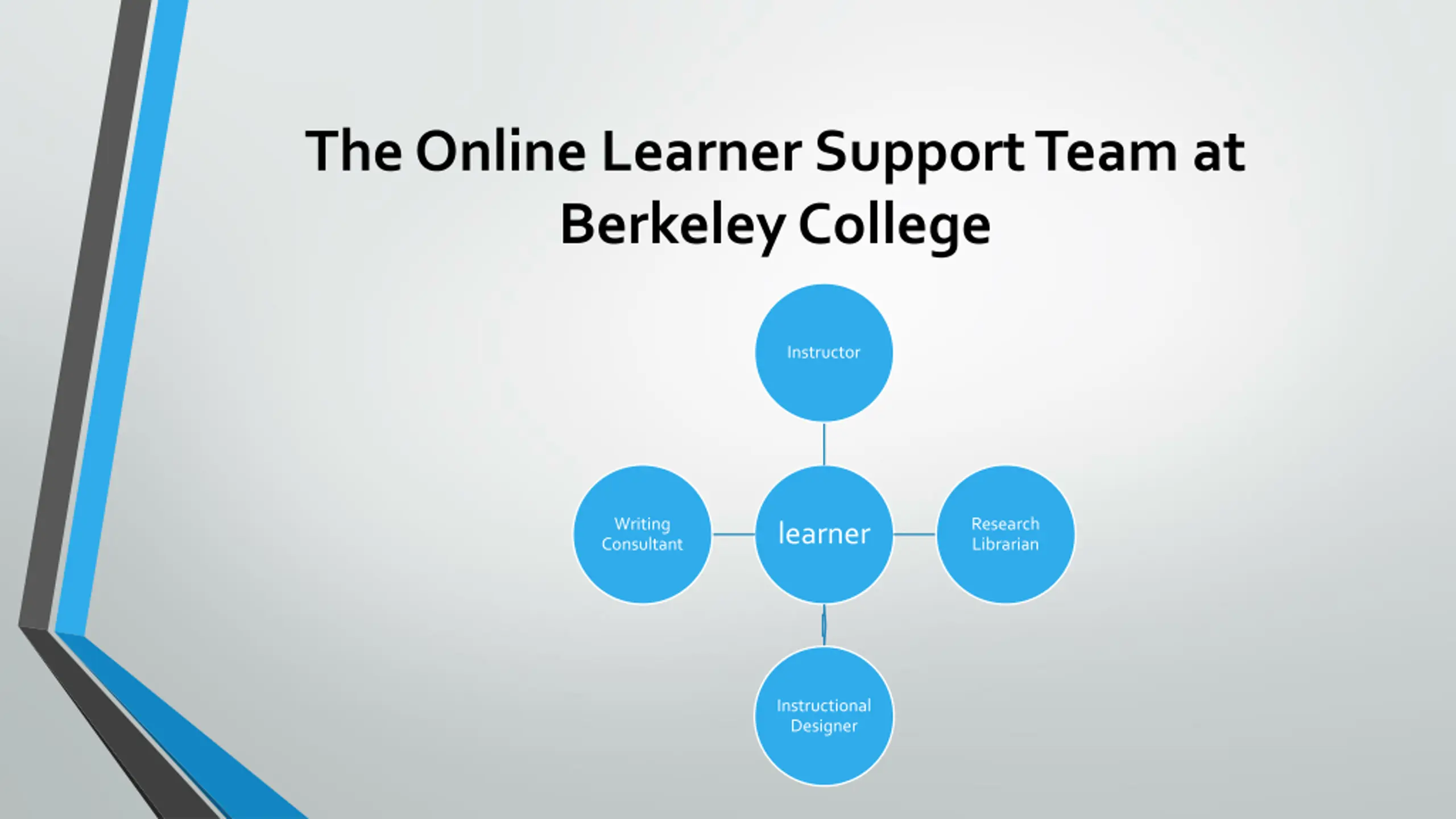 The Online Learner Support Team at Berkeley College Instructor Writing Consultant Research Librarian learner Instructional Designer