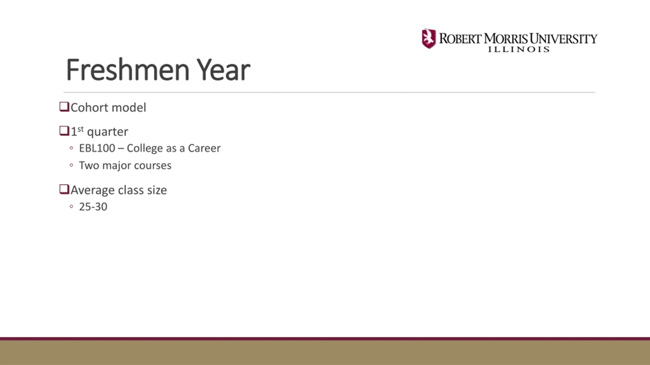 Freshmen Year Freshmen Year Cohort model 1st quarter EBL100 College as a Career Two major courses Average class size 25-30