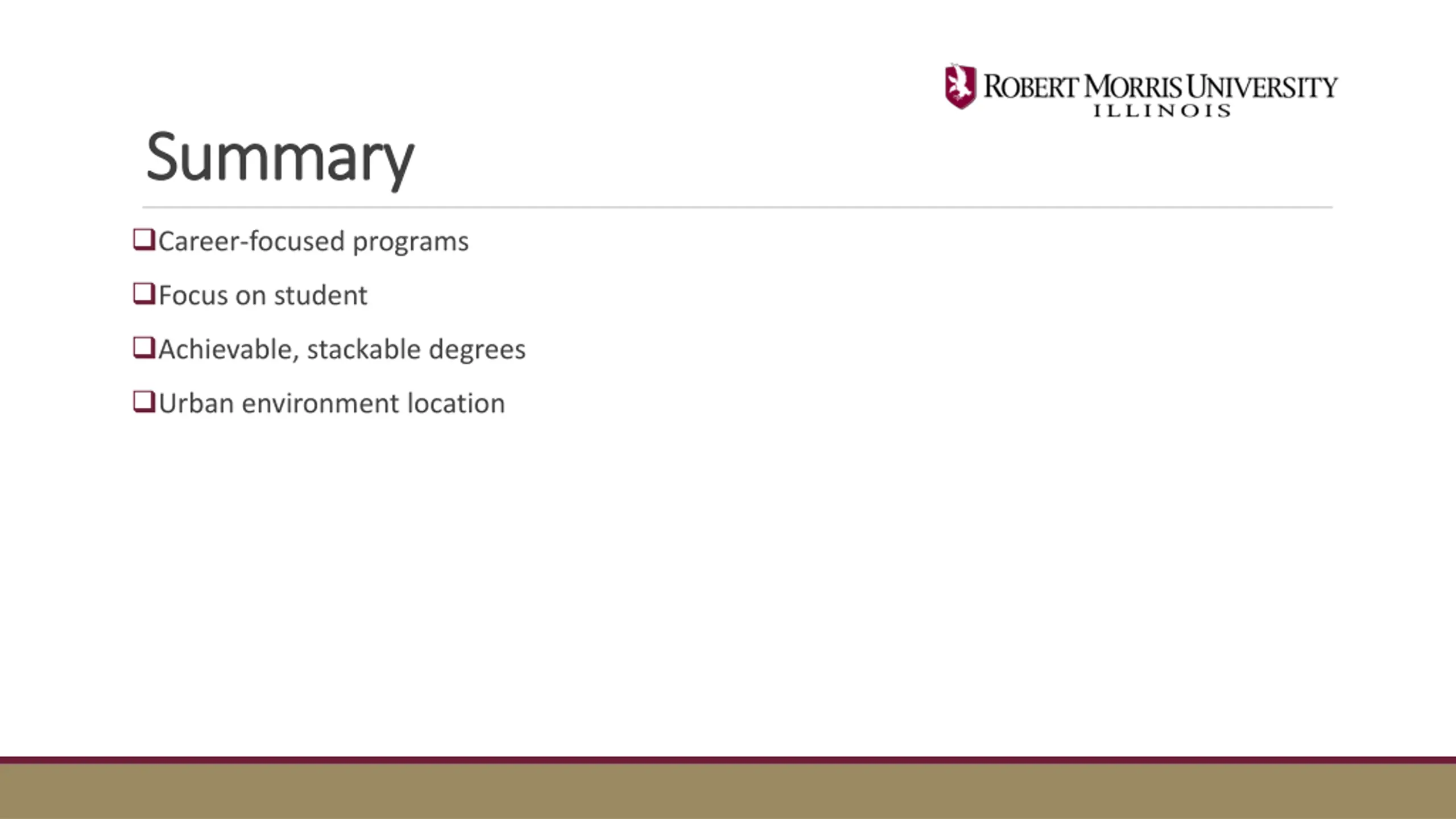Summary Summary Career-focused programs Focus on student Achievable, stackable degrees Urban environment location
