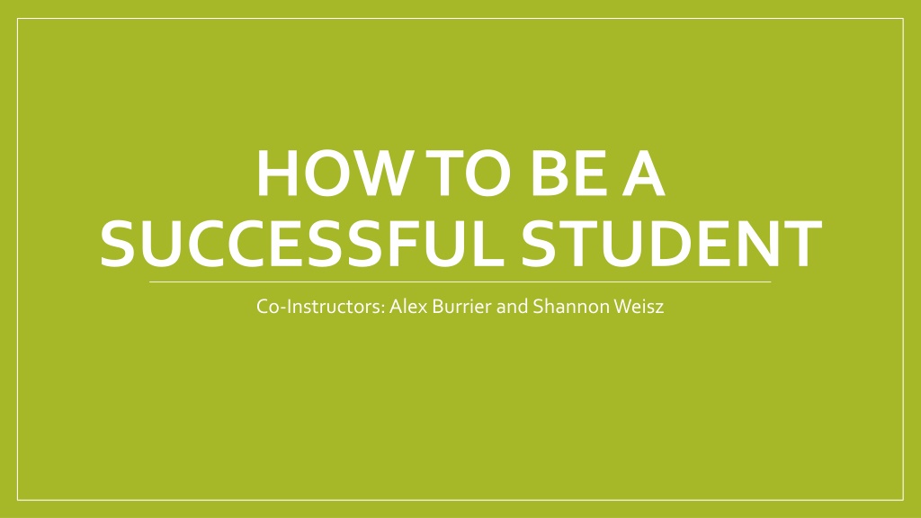 HOW TO BE A SUCCESSFUL STUDENT Co-Instructors: Alex Burrier and Shannon Weisz