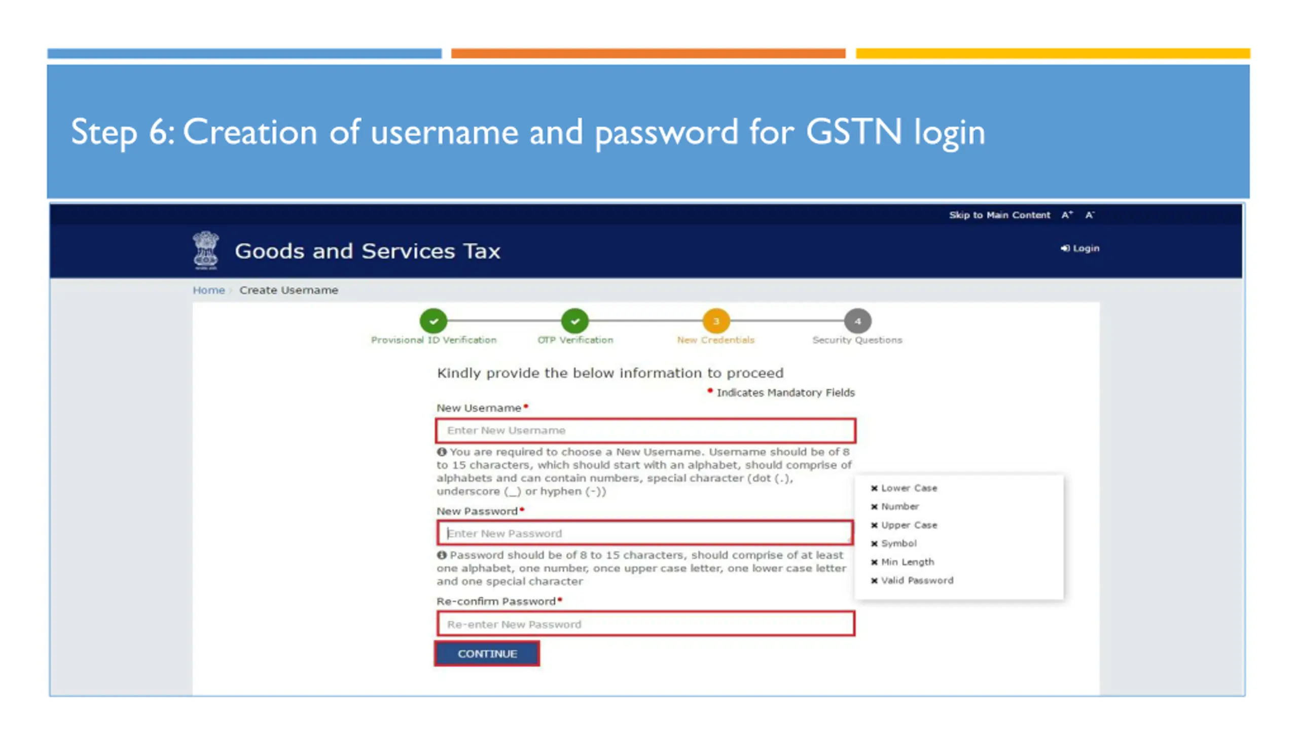 Note on login credentials In some cases, your login credentials may have been shared through State VAT authorities. If you have completed the enrolment process using these credentials, you do not need to repeat the process In some cases, your ID and Password may still be awaited from GSTN. For assistance, contact CBEC MITRA 10