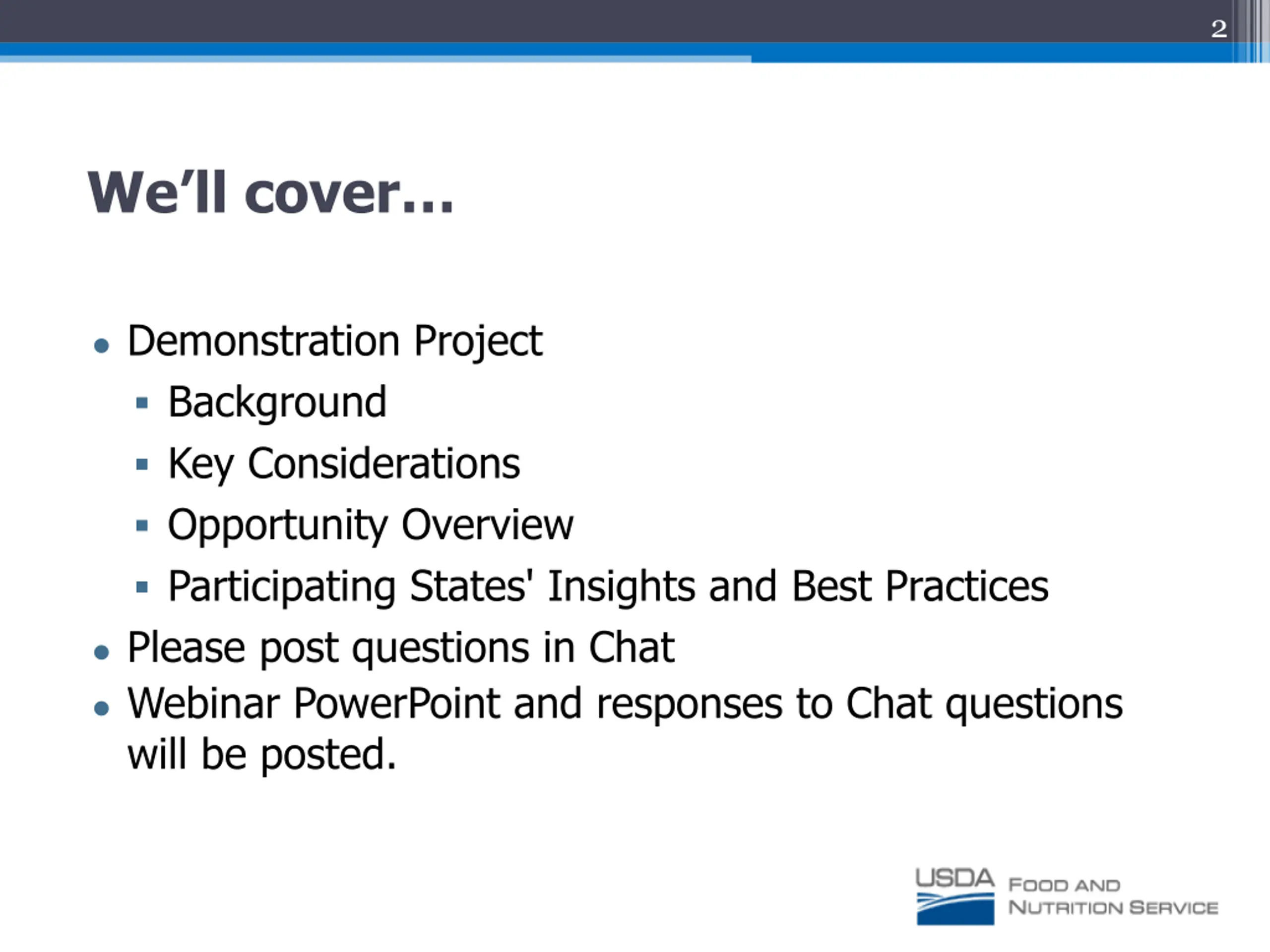 2 We ll cover Demonstration Project Background Key Considerations Opportunity Overview Participating States' Insights and Best Practices Please post questions in Chat Webinar PowerPoint and responses to Chat questions will be posted.
