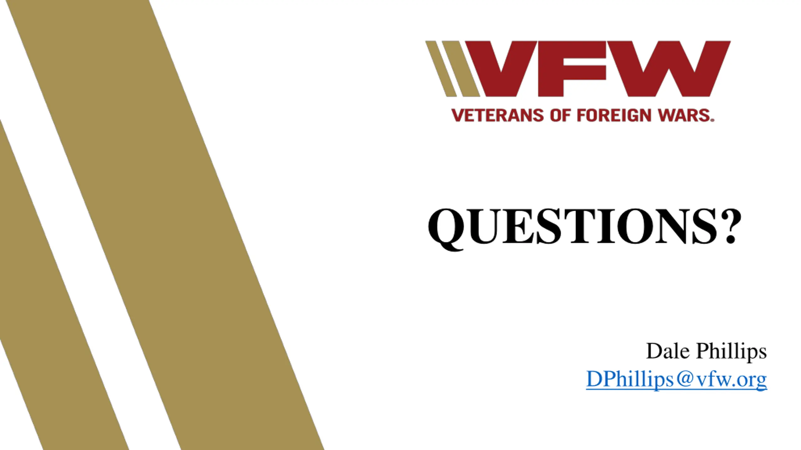 QUESTIONS? Dale Phillips DPhillips@vfw.org