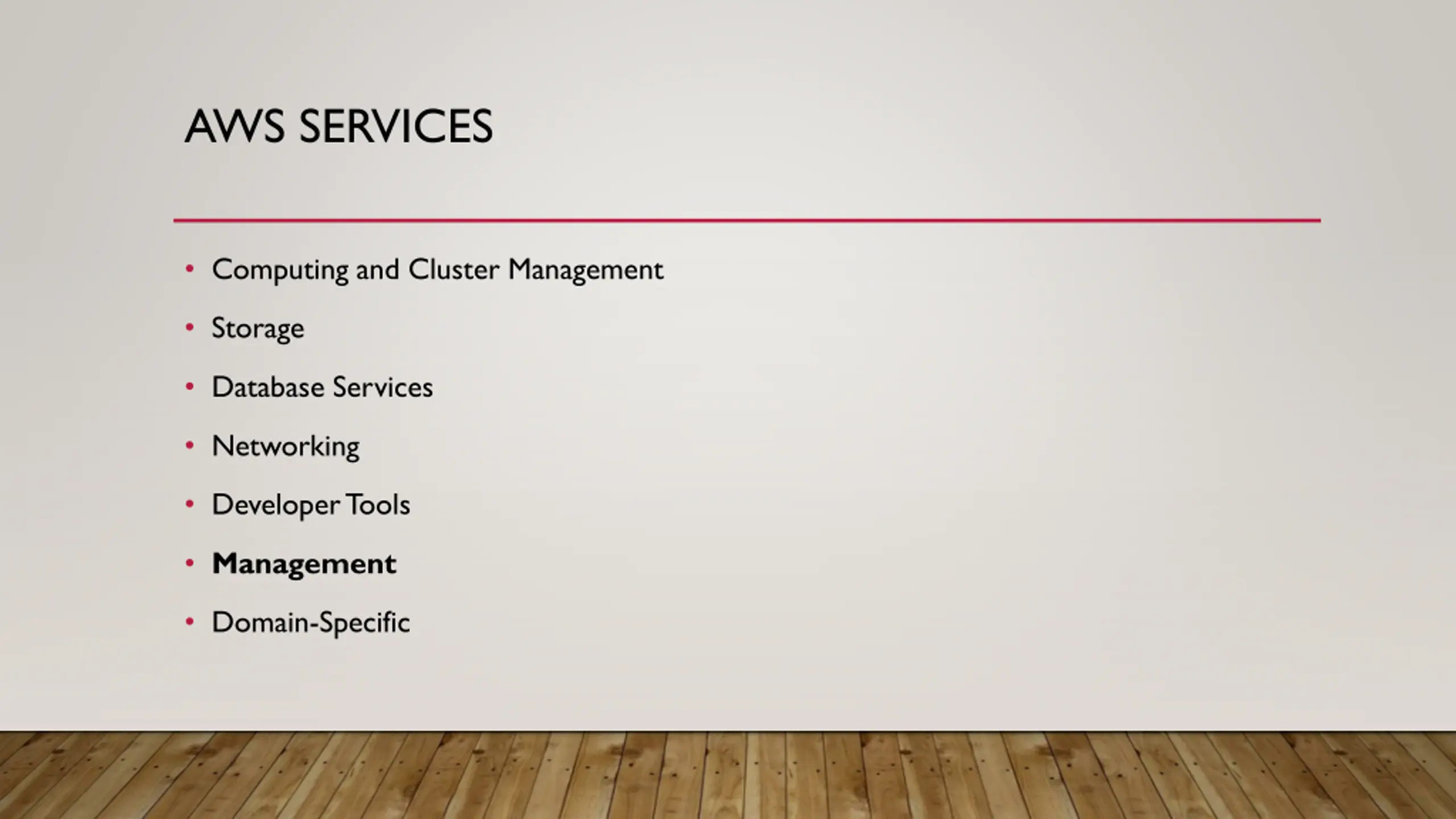 AWS SERVICES Computing and Cluster Management Storage Database Services Networking Developer Tools Management Domain-Specific
