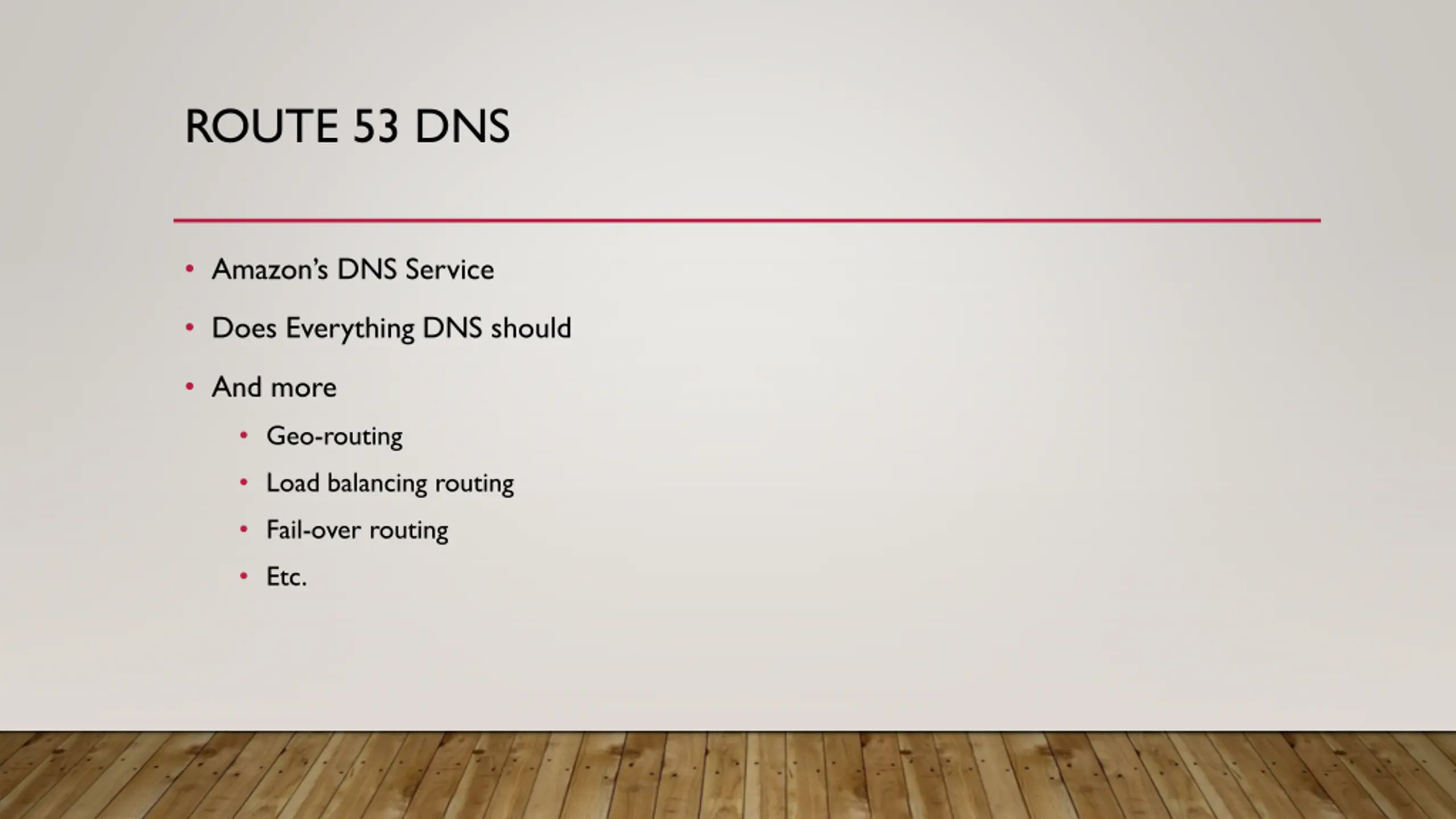 ROUTE 53 DNS Amazon s DNS Service Does Everything DNS should And more Geo-routing Load balancing routing Fail-over routing Etc.