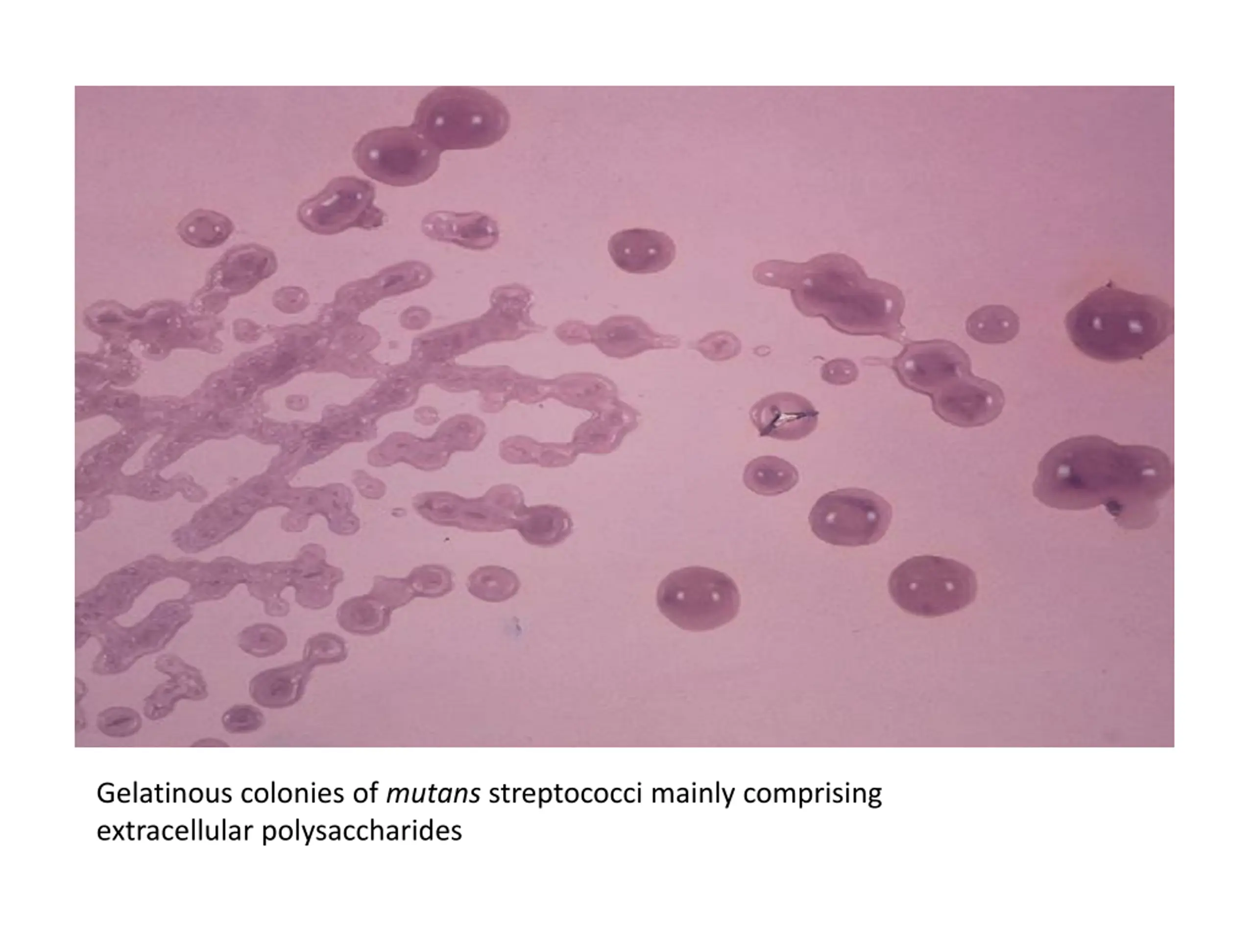 Gelatinous colonies of mutans streptococci mainly comprising extracellular polysaccharides