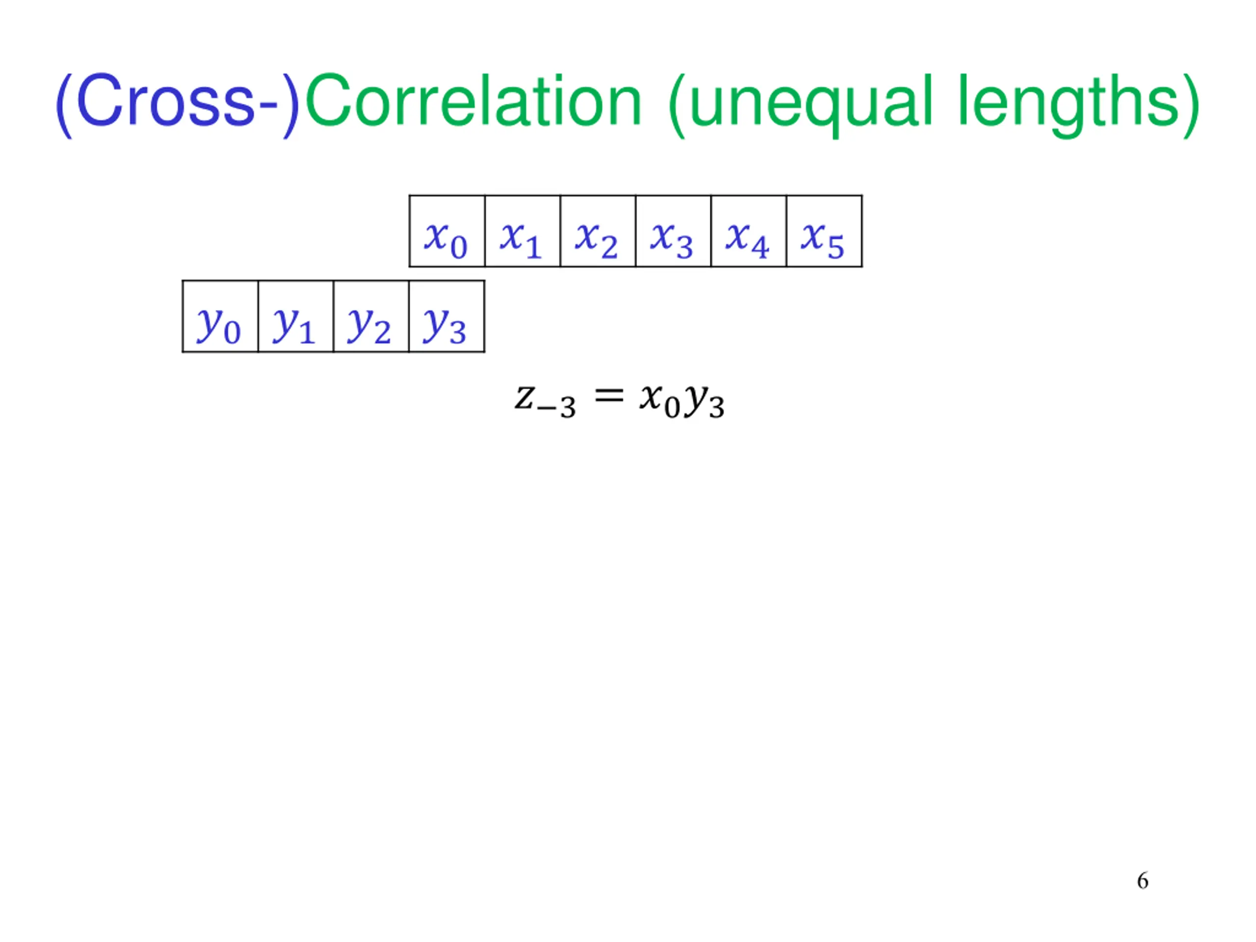 (Cross-)Correlation (unequal lengths) ?0?1?2?3?4?5 ?0?1?2?3 ? 3= ?0?3 6