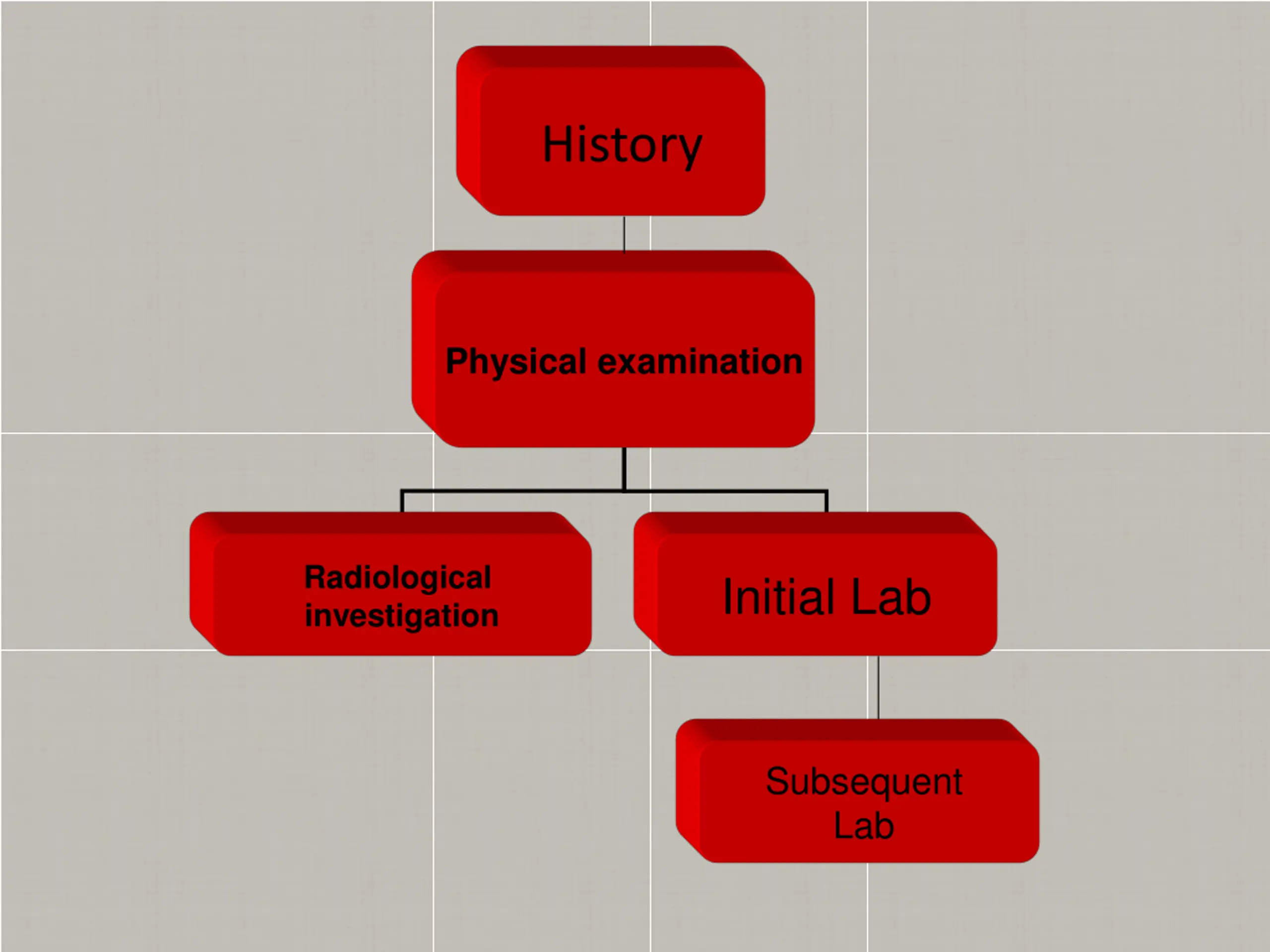 History Physical examination Radiological investigation Initial Lab Subsequent Lab