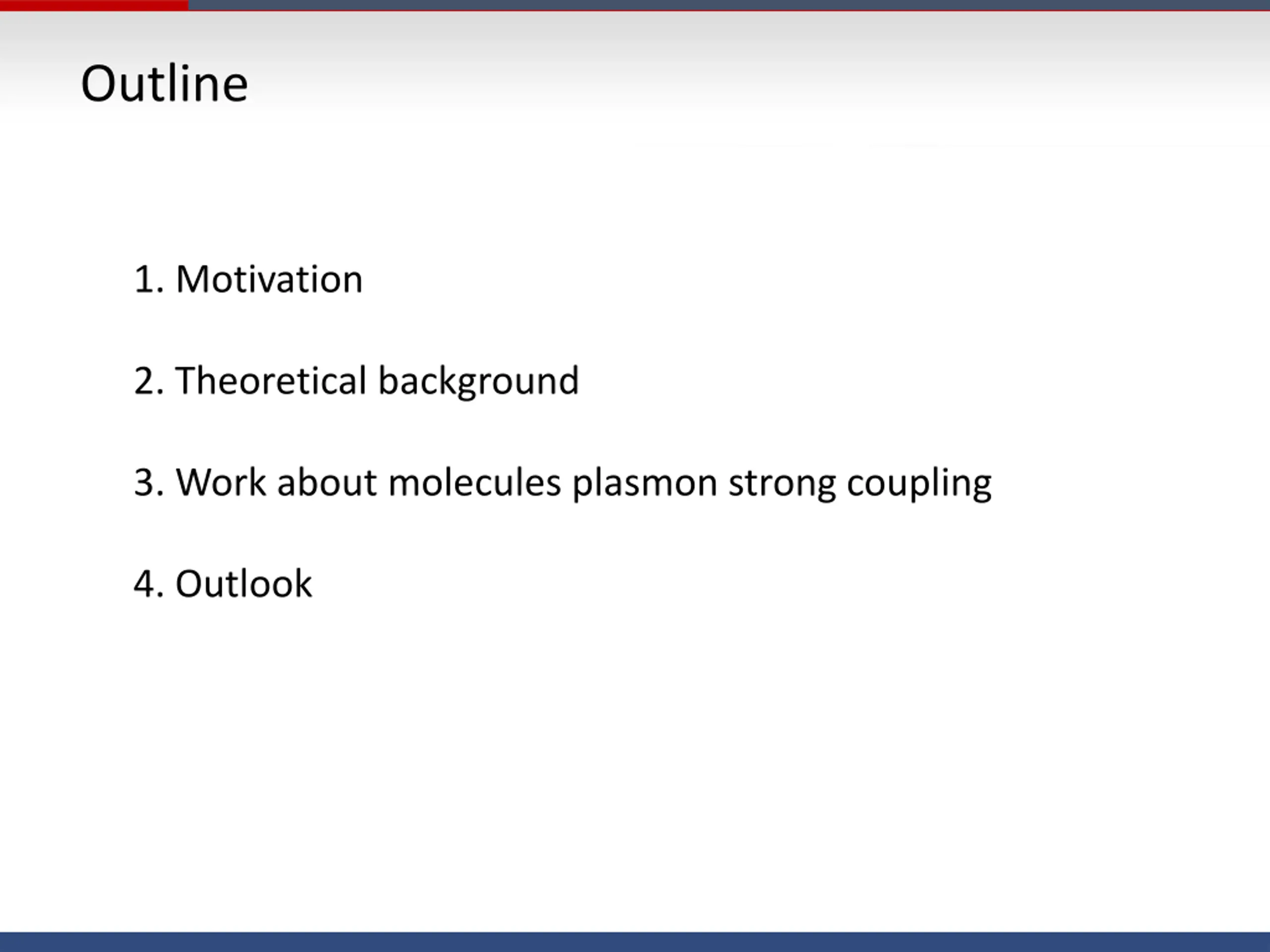 Outline 1. Motivation 2. Theoretical background 3. Work about molecules plasmon strong coupling 4. Outlook