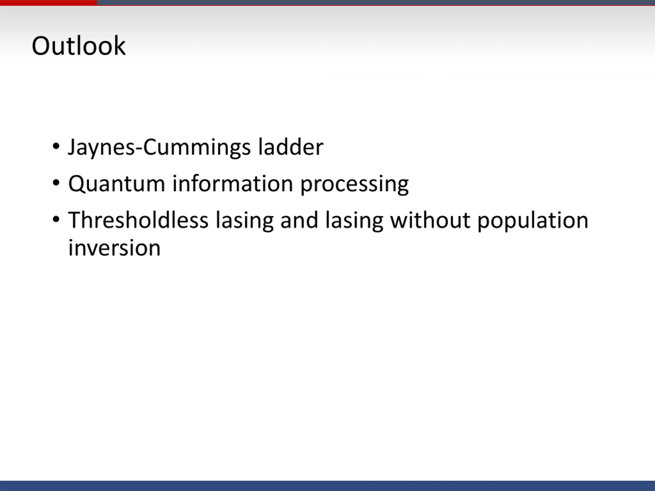 Outlook Jaynes-Cummings ladder Quantum information processing Thresholdless lasing and lasing without population inversion