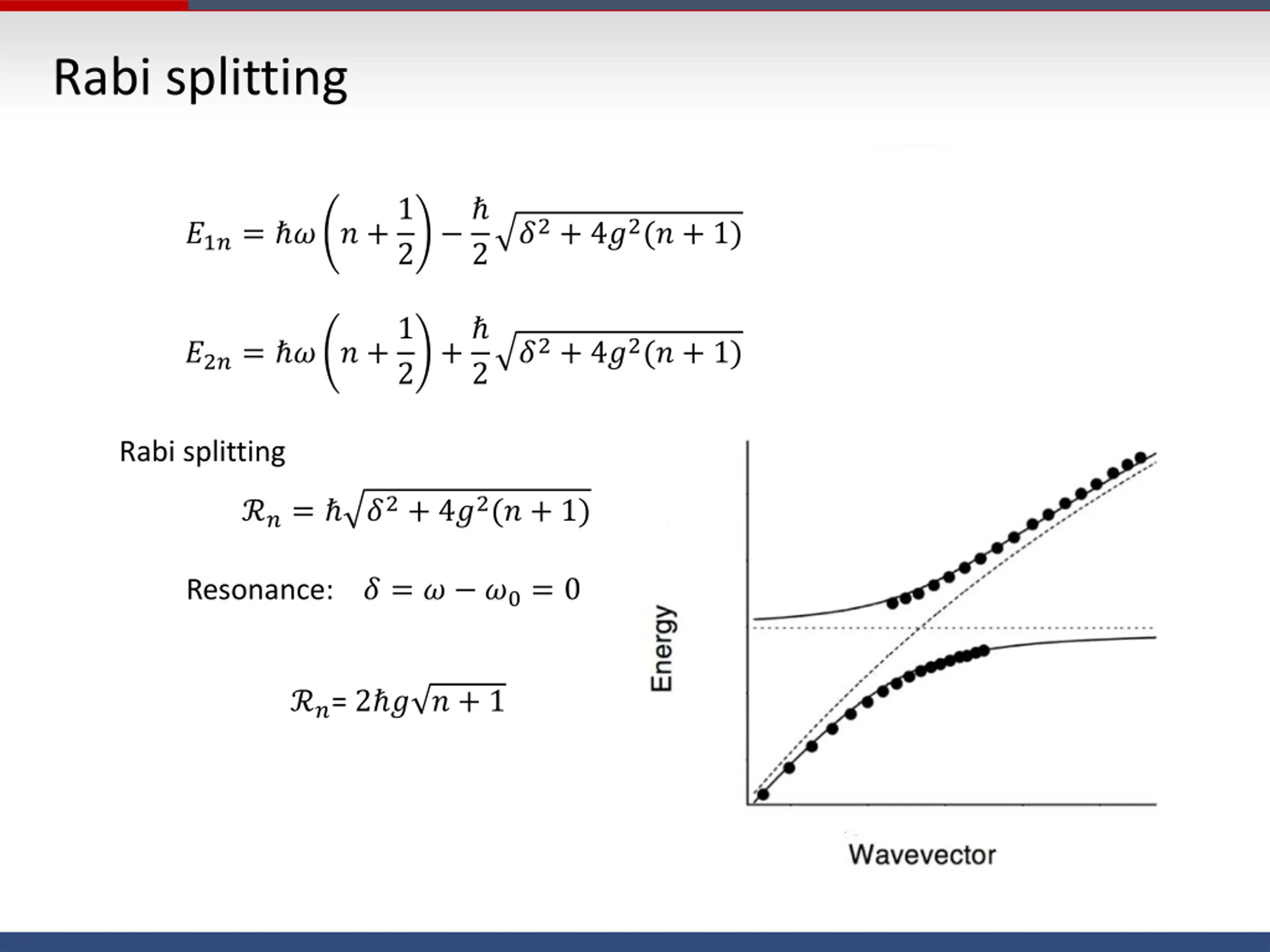 Rabi splitting ?1?= ? ? +1 ?2+ 4?2(? + 1) 2 2 ?2?= ? ? +1 + ?2+ 4?2(? + 1) 2 2 Rabi splitting ?= ?2+ 4?2(? + 1) Resonance: ? = ? ?0= 0 ?= 2 ? ? + 1