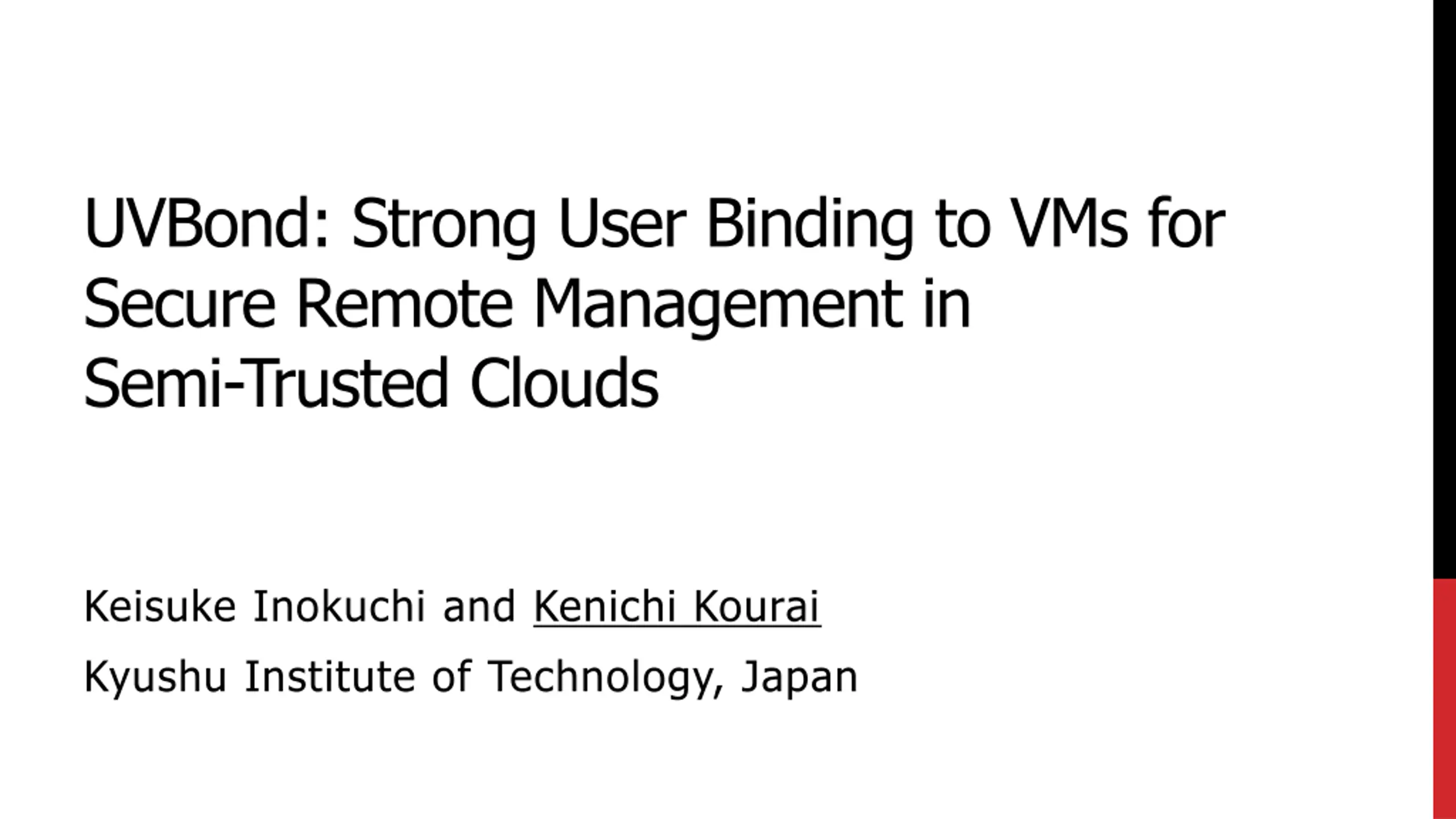 UVBond: Strong User Binding to VMs for Secure Remote Management in Semi-Trusted Clouds Keisuke Inokuchi and Kenichi Kourai Kyushu Institute of Technology, Japan