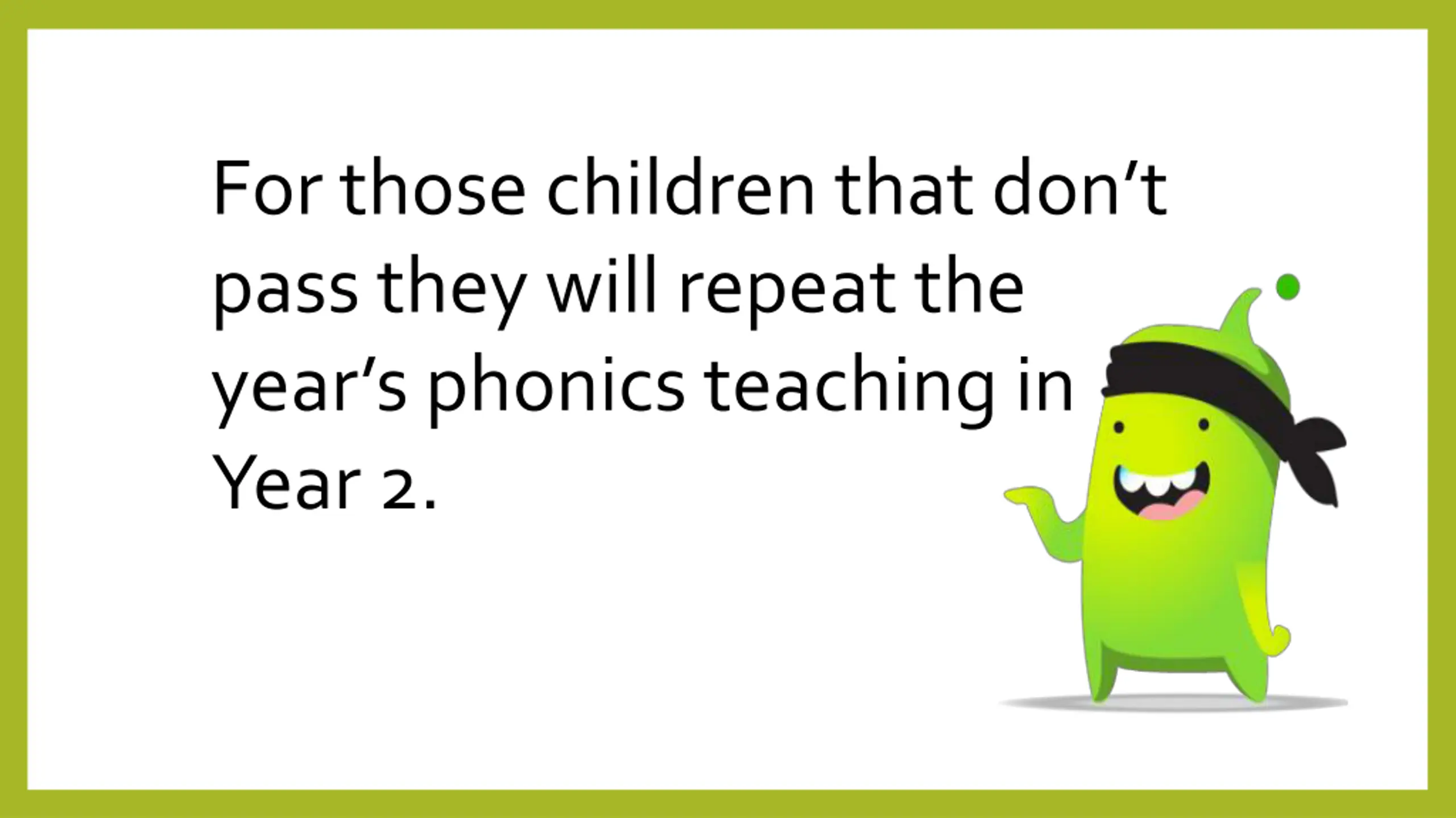 For those children that dont pass they will repeat the year s phonics teaching in Year 2.