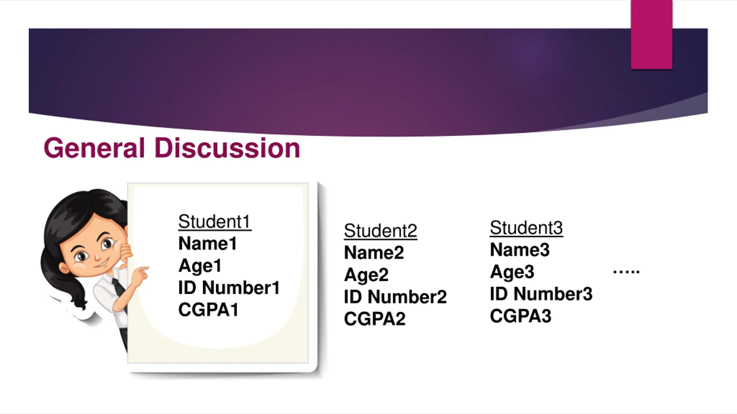 General Discussion Student1 Name1 Age1 ID Number1 CGPA1 Student3 Name3 Age3 ID Number3 CGPA3 Student2 Name2 Age2 ID Number2 CGPA2 ..