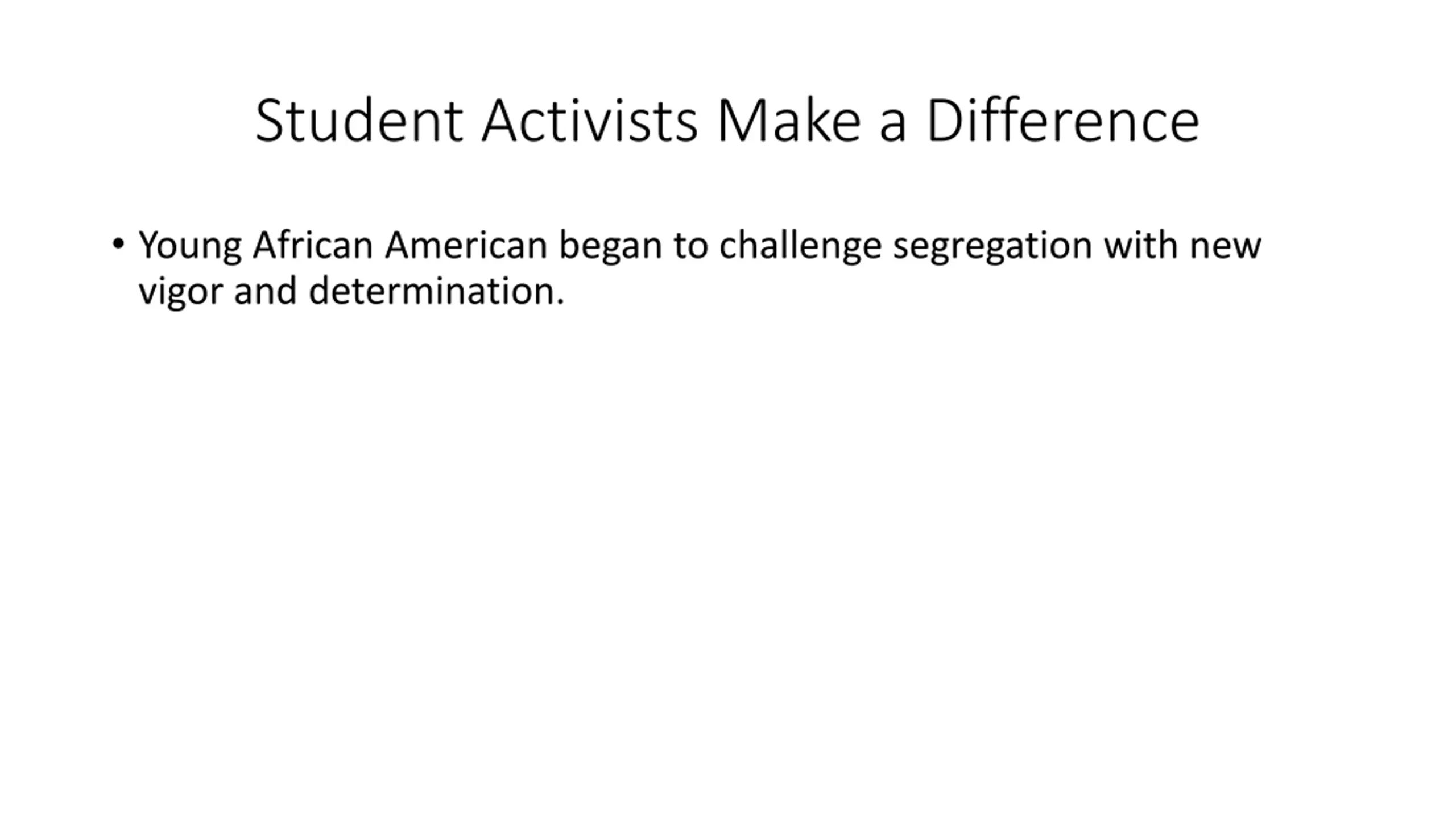 Student Activists Make a Difference Young African American began to challenge segregation with new vigor and determination.
