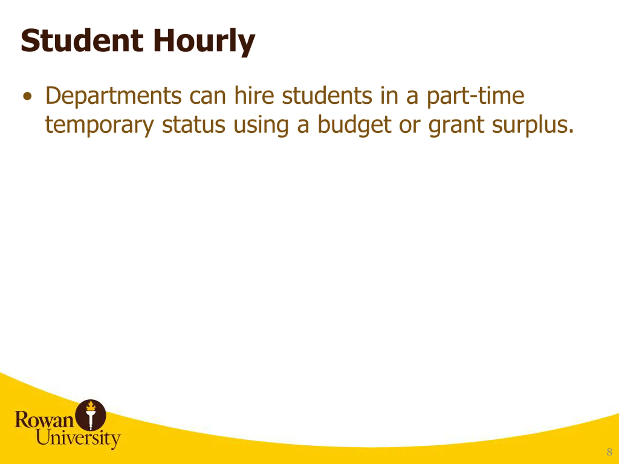 Student Hourly Departments can hire students in a part-time temporary status using a budget or grant surplus. 8