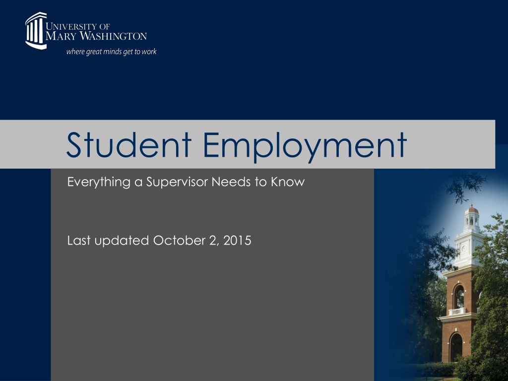 Student Employment Everything a Supervisor Needs to Know Last updated October 2, 2015