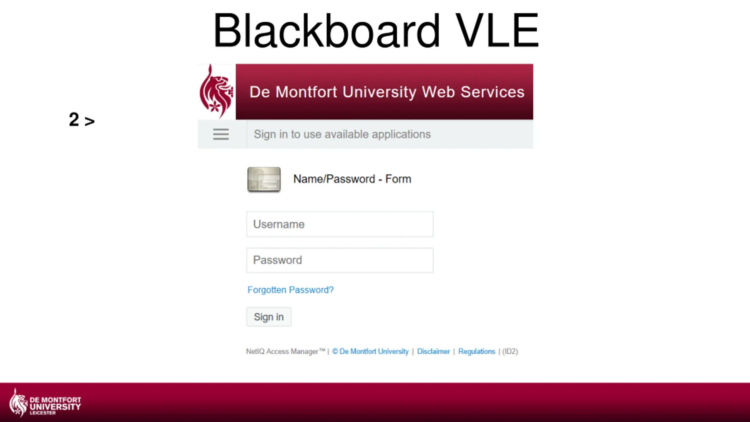 Blackboard VLE Blackboard is a web-based virtual learning environment (VLE) used at DMU to support your learning. Blackboard can be accessed via the Blackboard tile in MyDMU
