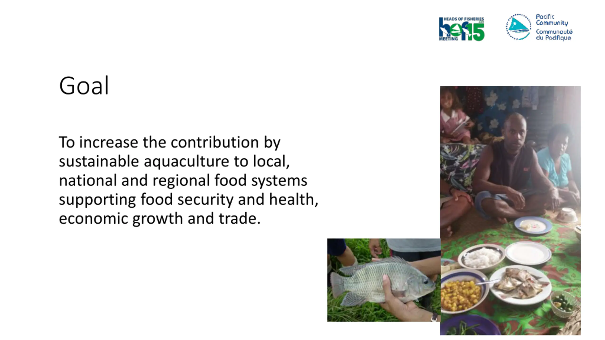 Goal To increase the contribution by sustainable aquaculture to local, national and regional food systems supporting food security and health, economic growth and trade.