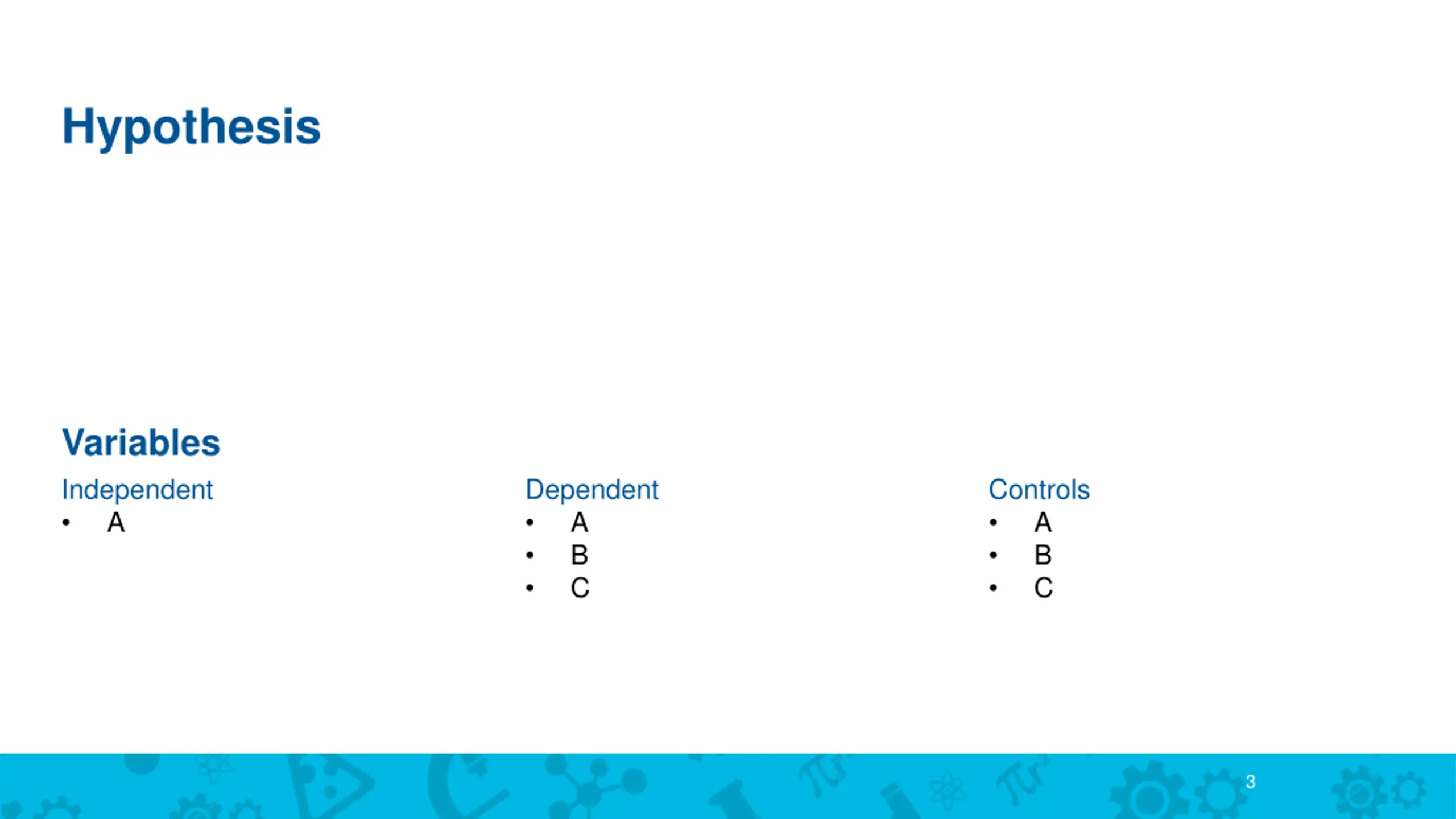 Hypothesis Variables Independent A Dependent A B C Controls A B C 3