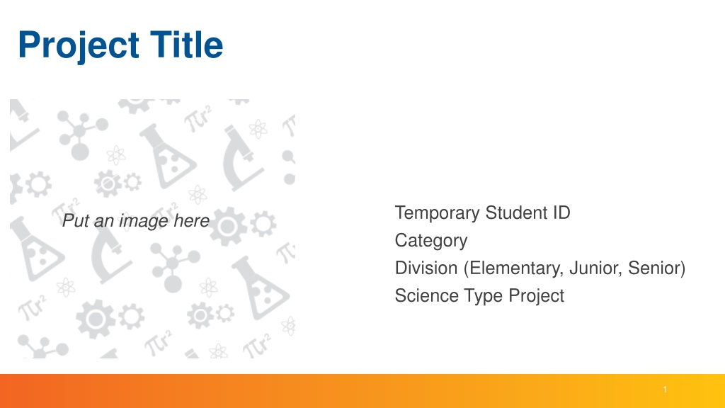 Project Title Temporary Student ID Category Division (Elementary, Junior, Senior) Science Type Project Put an image here 1