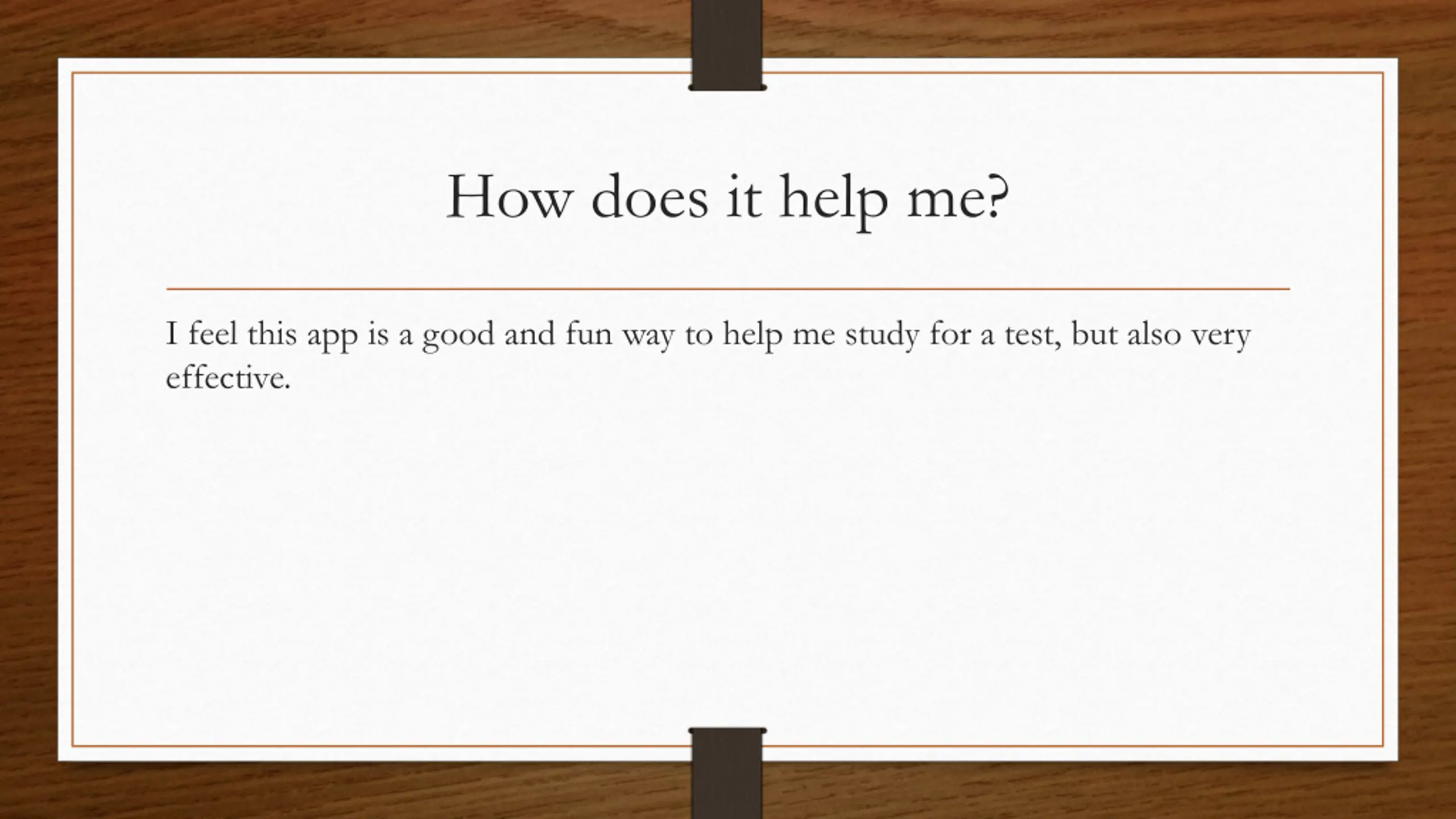 How does it help me? I feel this app is a good and fun way to help me study for a test, but also very effective.