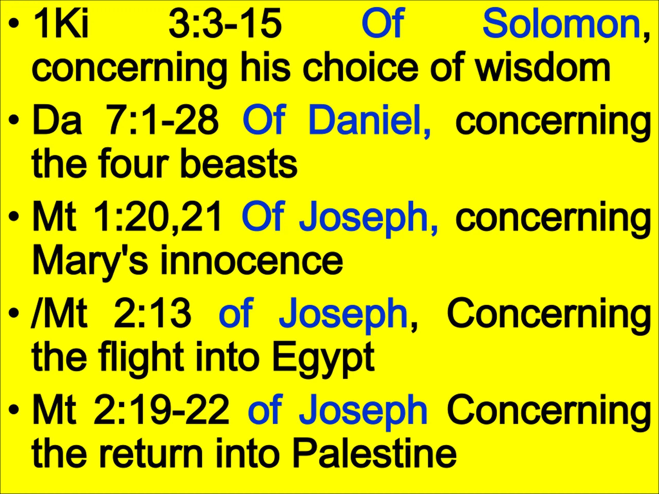 1 1Ki Ki concerning concerning his Da Da 7 7: :1 1- -28 the the four four beasts Mt Mt 1 1: :20 20, ,21 Mary's Mary's innocence innocence /Mt /Mt 2 2: :13 13 of of Joseph the the flight flight into into Egypt Mt Mt 2 2: :19 19- -22 22 of of Joseph the the return return into into Palestine 3 3: :3 3- -15 15 his choice choice of of wisdom 28 Of Of Daniel, Daniel, concerning beasts 21 Of Of Joseph, Joseph, concerning Of Of Solomon Solomon, , wisdom concerning concerning Joseph, , Concerning Concerning Egypt Joseph Concerning Concerning Palestine