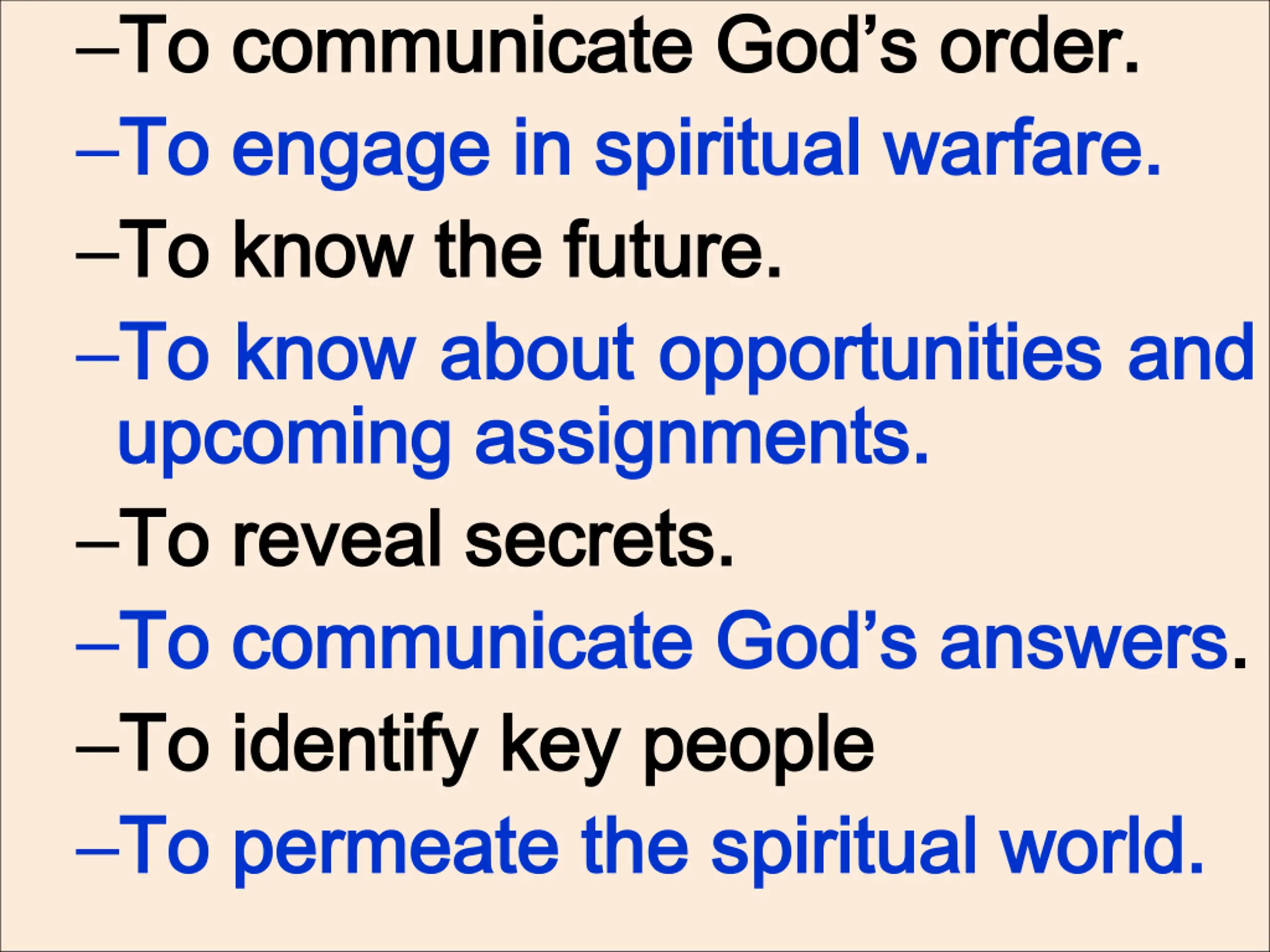 To To communicate communicate God s To To engage engage in in spiritual To To know know the the future To To know know about about opportunities upcoming upcoming assignments assignments. . To To reveal reveal secrets secrets. . To To communicate communicate God s To To identify identify key key people To To permeate permeate the the spiritual God s order spiritual warfare future. . opportunities and order. . warfare. . and God s answers answers. . people spiritual world world. .