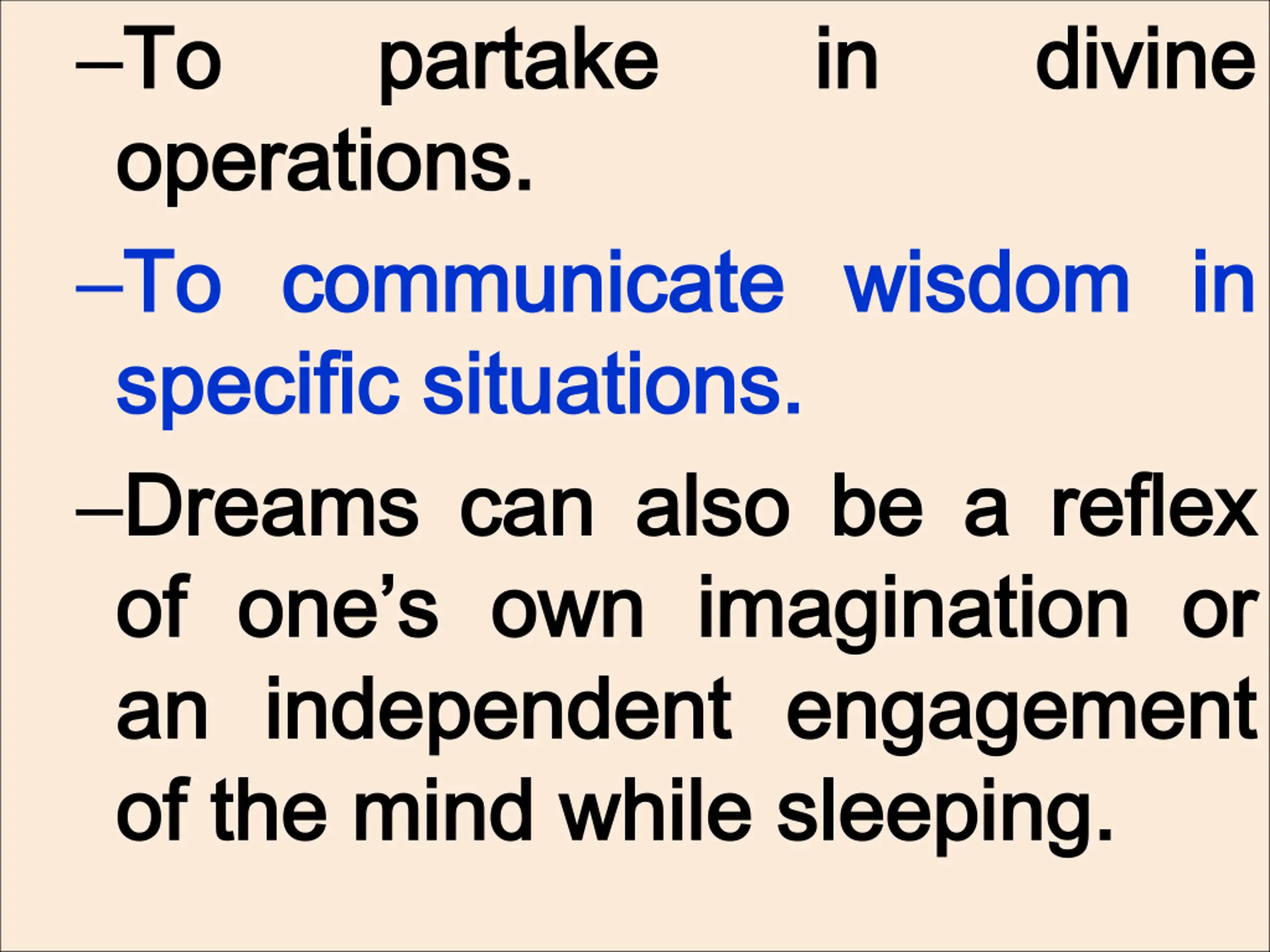 To To operations operations. . To To communicate communicate wisdom specific specific situations situations. . Dreams Dreams can can also of of one s one s own own imagination an an independent independent engagement of of the the mind mind while while sleeping partake partake in in divine divine wisdom in in also be imagination or or engagement sleeping. . be a a reflex reflex