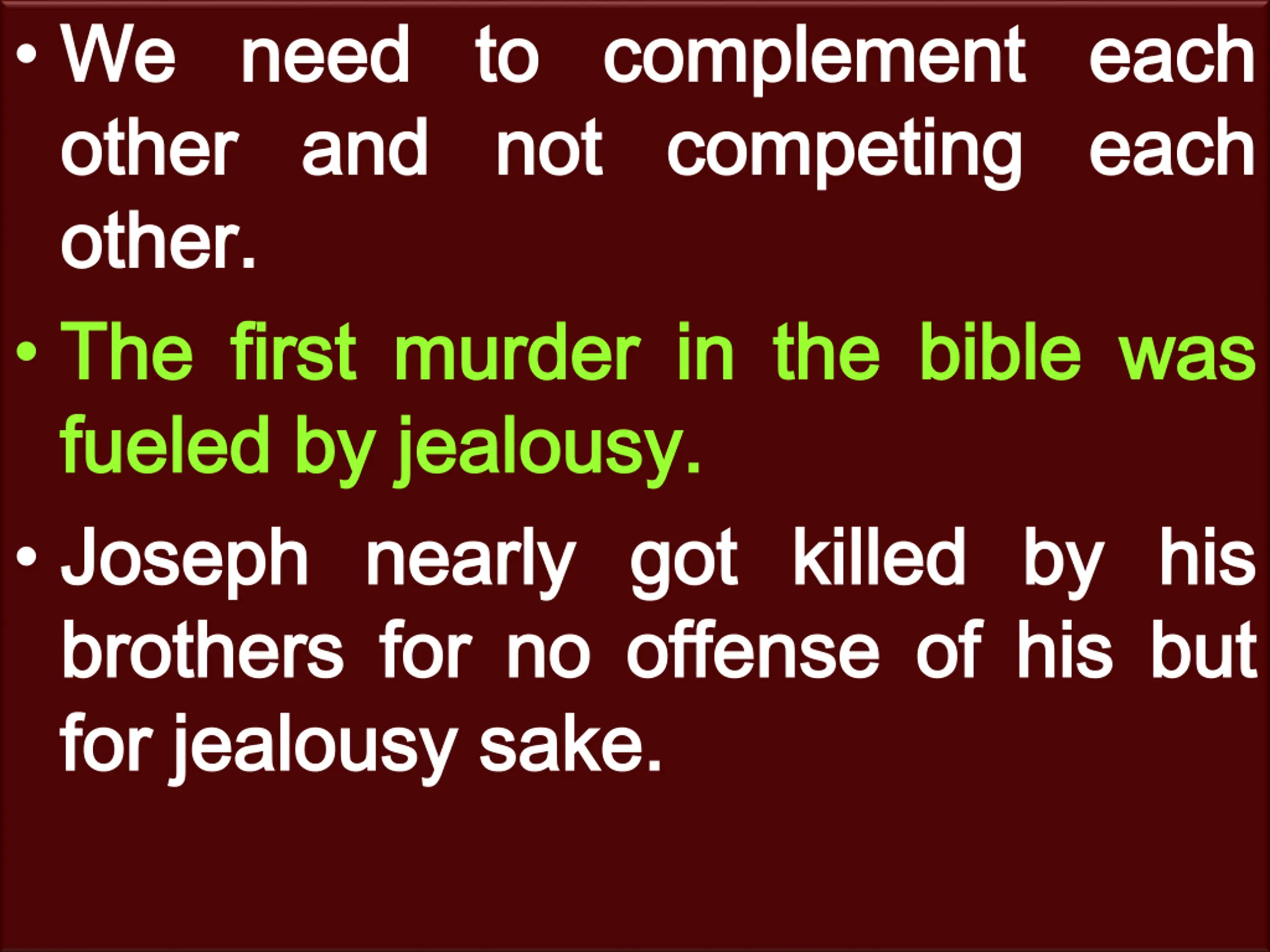 We We need other other and other other. . The The first fueled fueled by Joseph Joseph nearly brothers brothers for for for jealousy jealousy sake need to to complement complement each and not not competing competing each each each first murder murder in in the by jealousy jealousy. . nearly got for no no offense sake. . the bible bible was was got killed killed by offense of of his by his his but his but