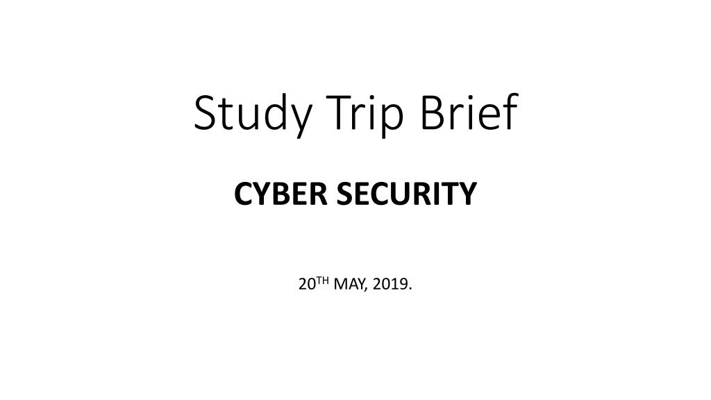 This brief highlights a study trip focusing on Cyber Security scheduled for 20th May 2019. The trip aims to provide insights into cybersecurity measures, threats, and solutions in today's digital landscape. Participants will engage in interactive sessions, workshops, and hands-on experiences to enhance their understanding of cyber threats and learn best practices to safeguard digital assets. This event is designed to equip individuals with practical knowledge and skills to navigate the complexities of cybersecurity effectively.