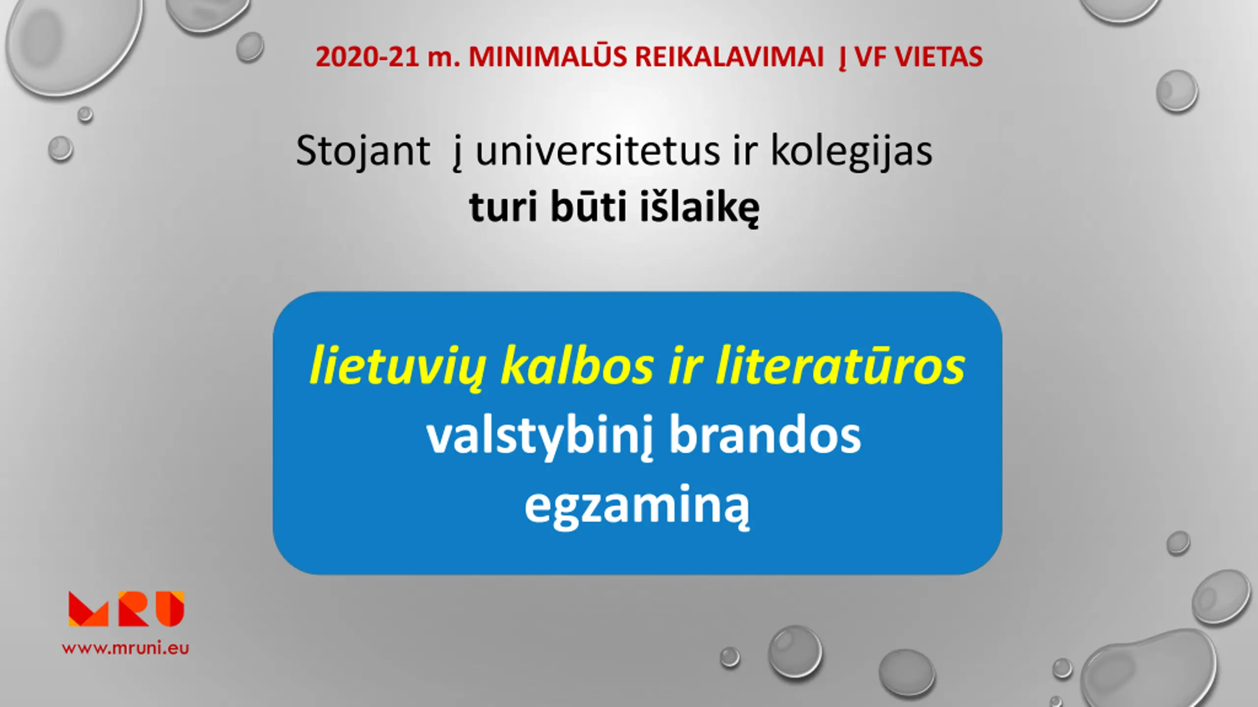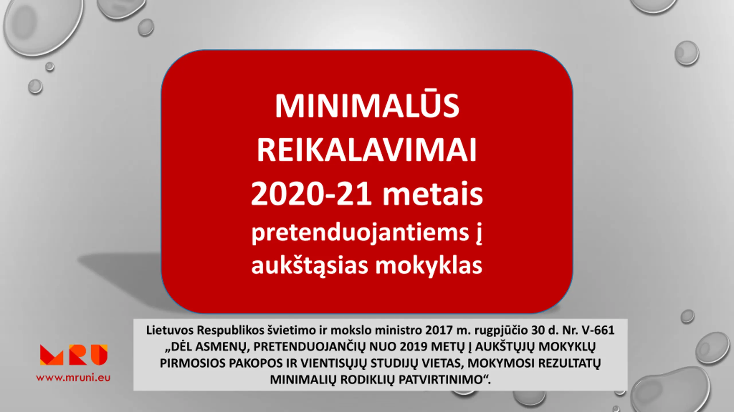 2020-21 m. MINIMALS REIKALAVIMAI VF VIETAS Stojant universitetus ir kolegijas turi b ti i laik lietuvi kalbos ir literat ros valstybin brandos egzamin www.mruni.eu