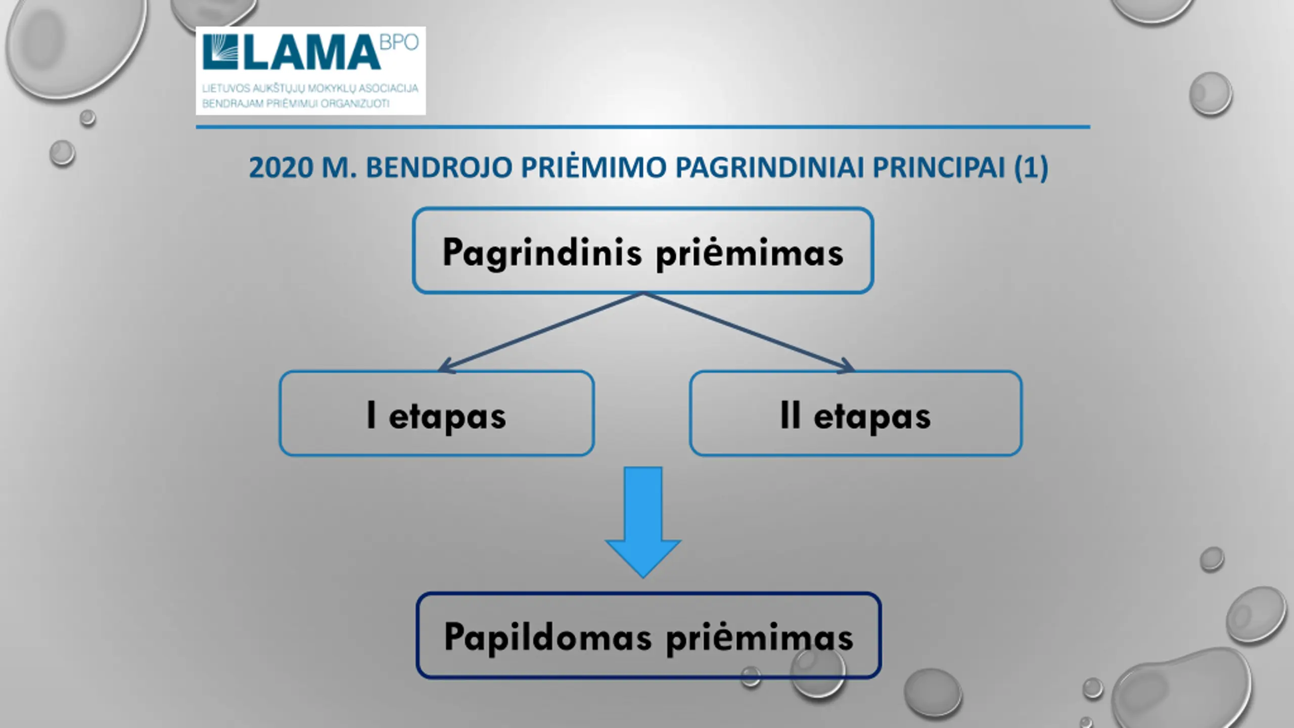 2020 M. BENDROJO PRIMIMO PAGRINDINIAI PRINCIPAI (1) Pagrindinis pri mimas I etapas II etapas Papildomas pri mimas