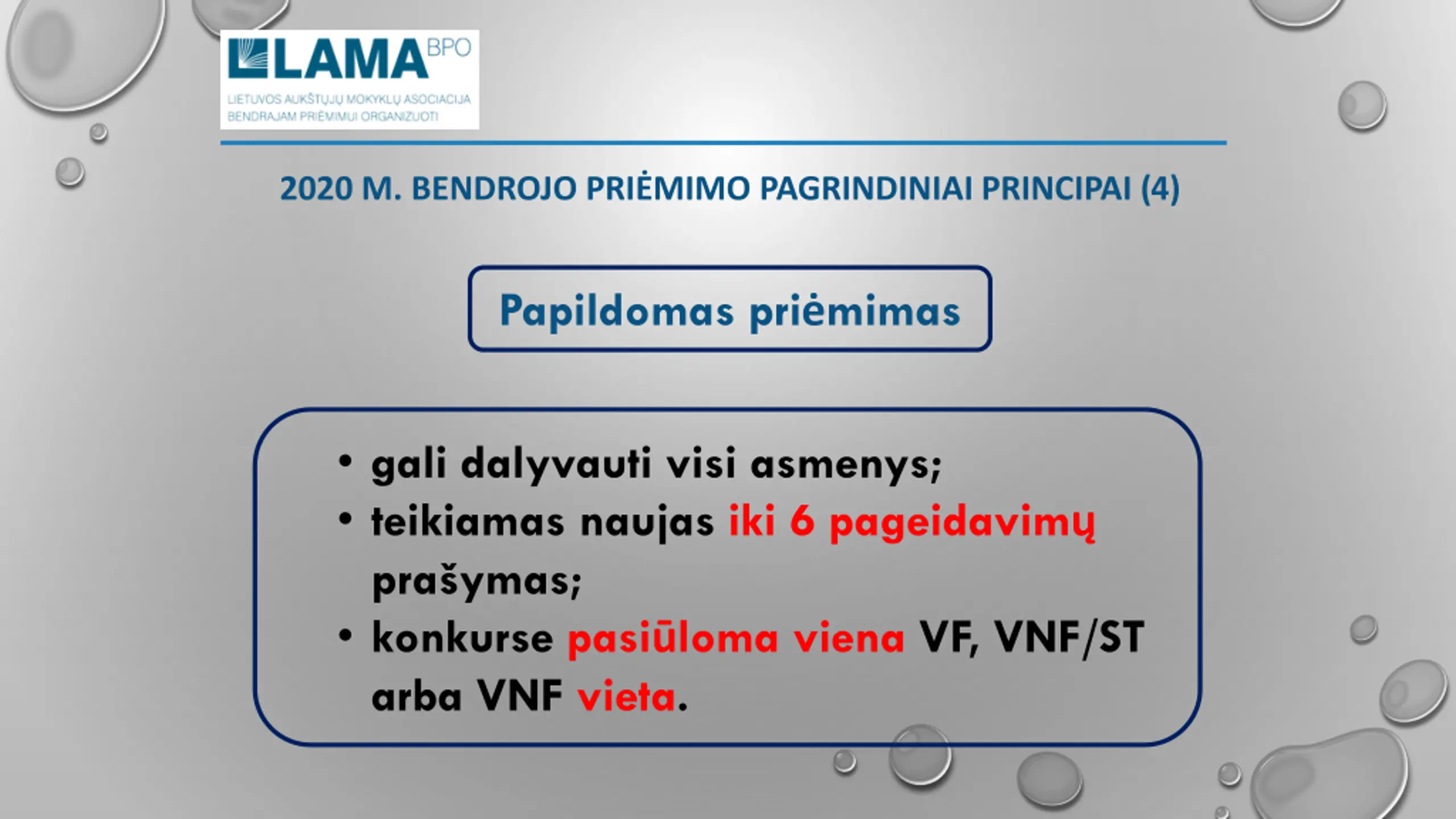 2020 M. BENDROJO PRIMIMO PAGRINDINIAI PRINCIPAI (4) Papildomas pri mimas gali dalyvauti visi asmenys; teikiamas naujas iki 6 pageidavim pra ymas; konkurse pasi loma viena VF, VNF/ST arba VNF vieta.