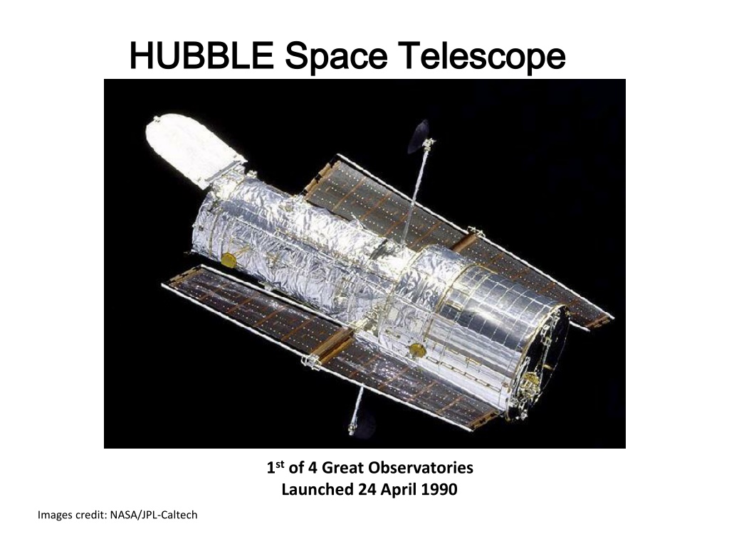HUBBLE Space Telescope HUBBLE Space Telescope 1st of 4 Great Observatories Launched 24 April 1990 Images credit: NASA/JPL-Caltech