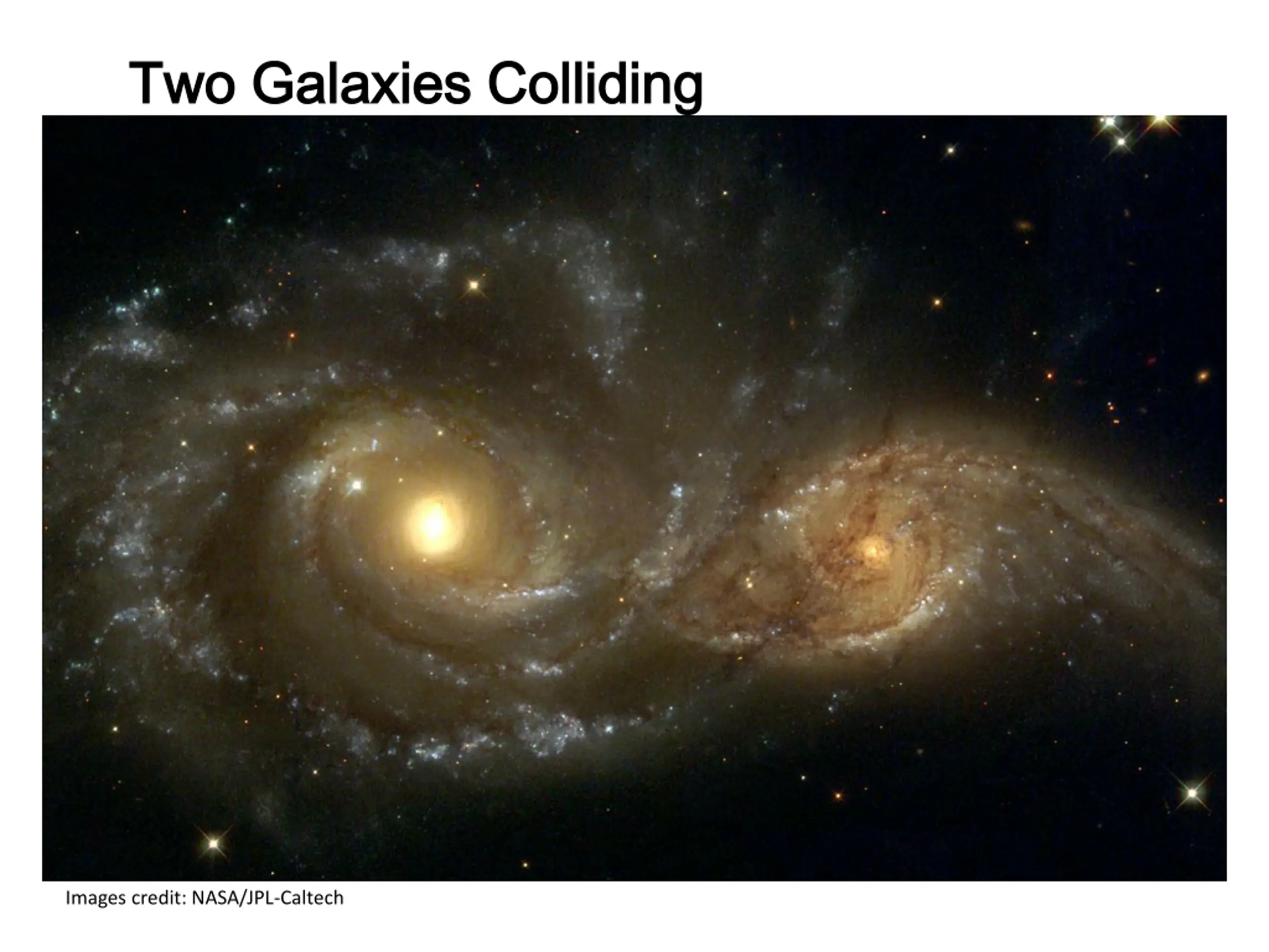 Two Galaxies Colliding Two Galaxies Colliding Images credit: NASA/JPL-Caltech