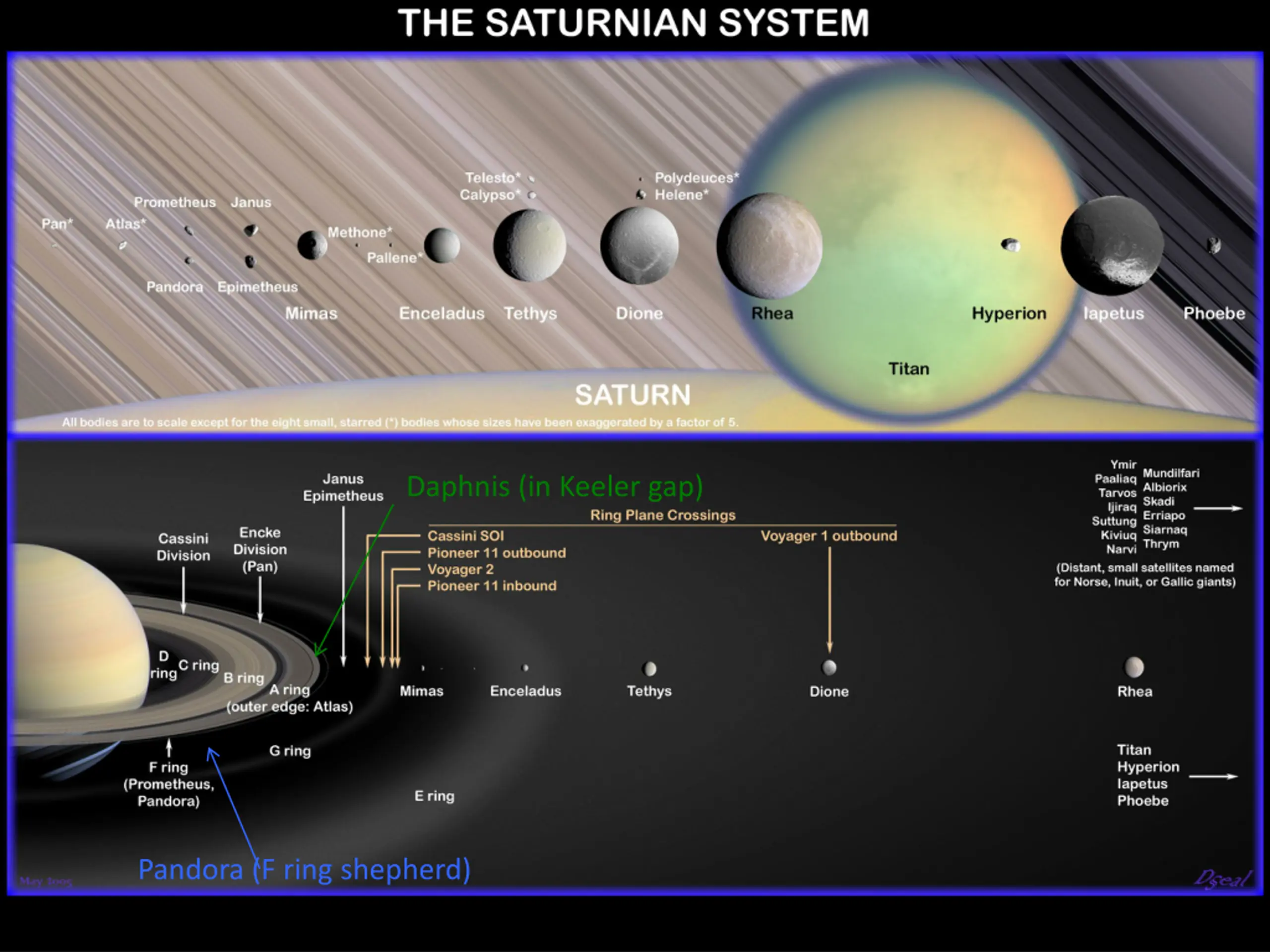 Daphnis (in Keeler gap) Pandora (F ring shepherd)
