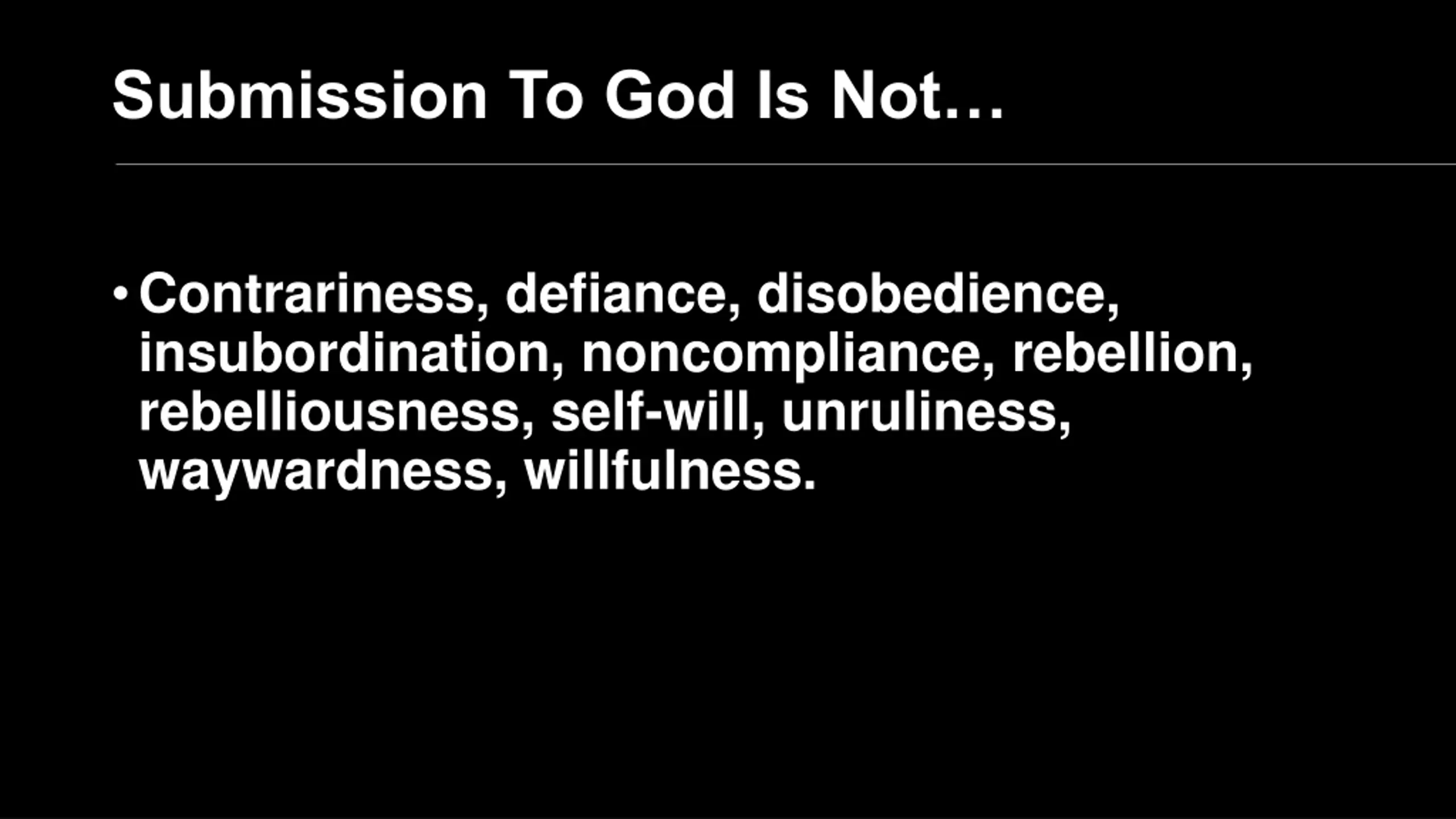 Submission To God Is Not Contrariness, defiance, disobedience, insubordination, noncompliance, rebellion, rebelliousness, self-will, unruliness, waywardness, willfulness.