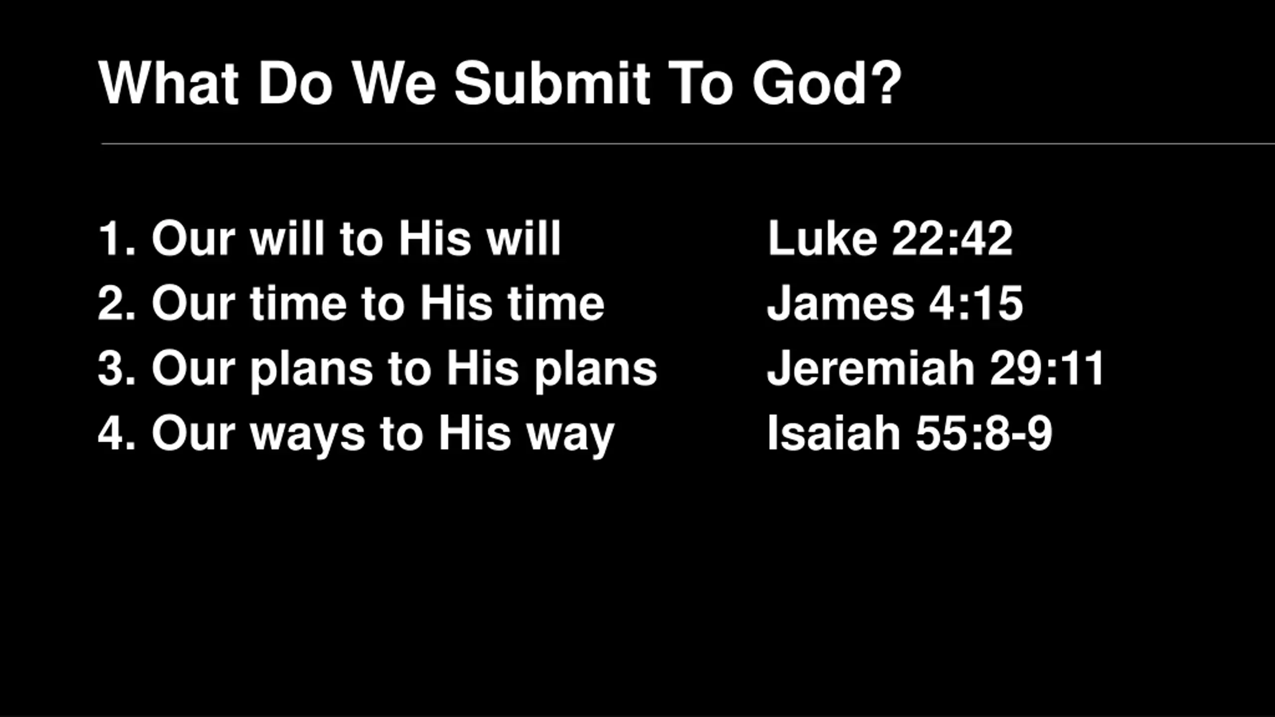 What Do We Submit To God? 1. Our will to His will 2. Our time to His time 3. Our plans to His plans 4. Our ways to His way Luke 22:42 James 4:15 Jeremiah 29:11 Isaiah 55:8-9