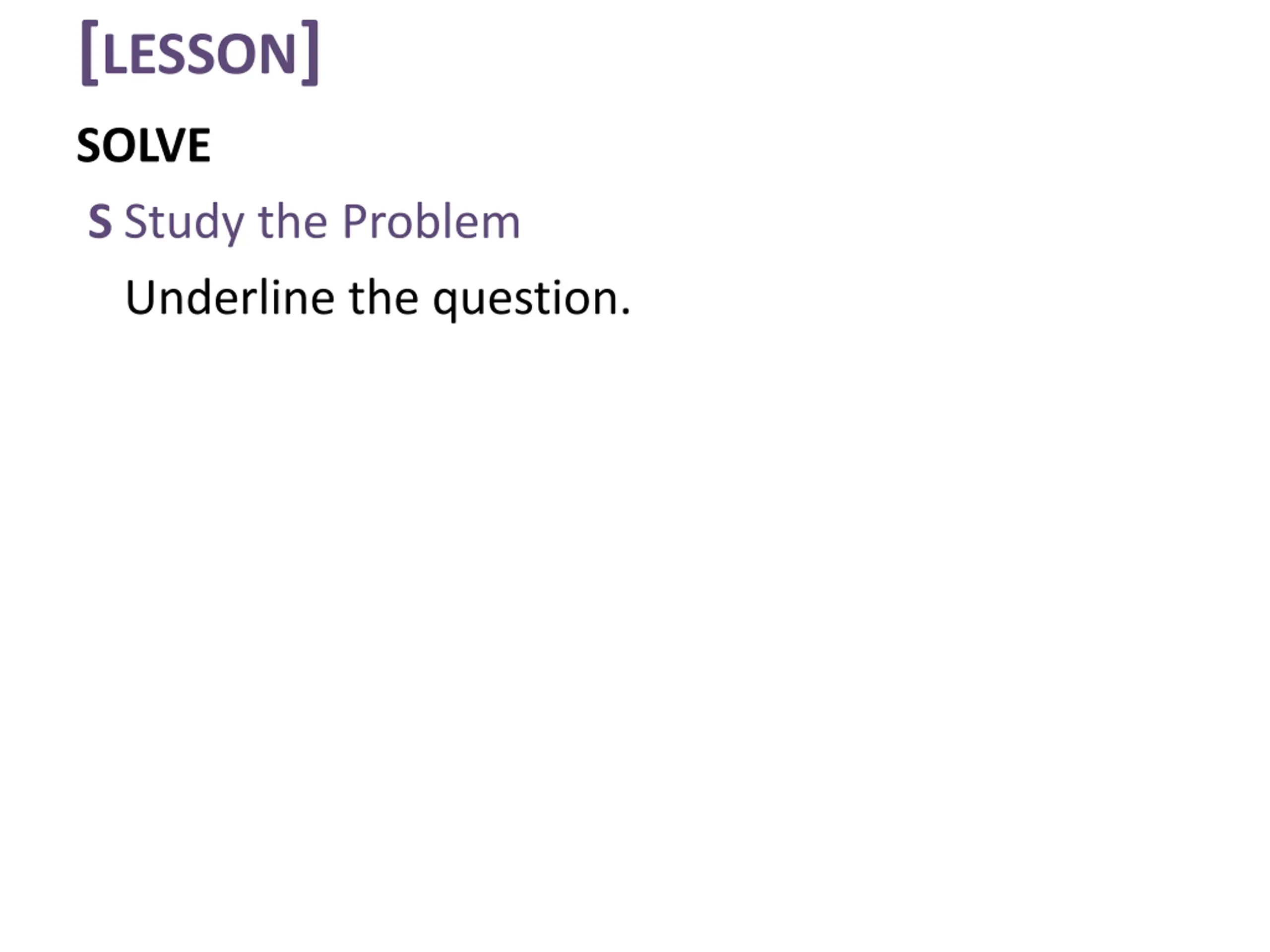 [LESSON] SOLVE S Study the Problem Underline the question.