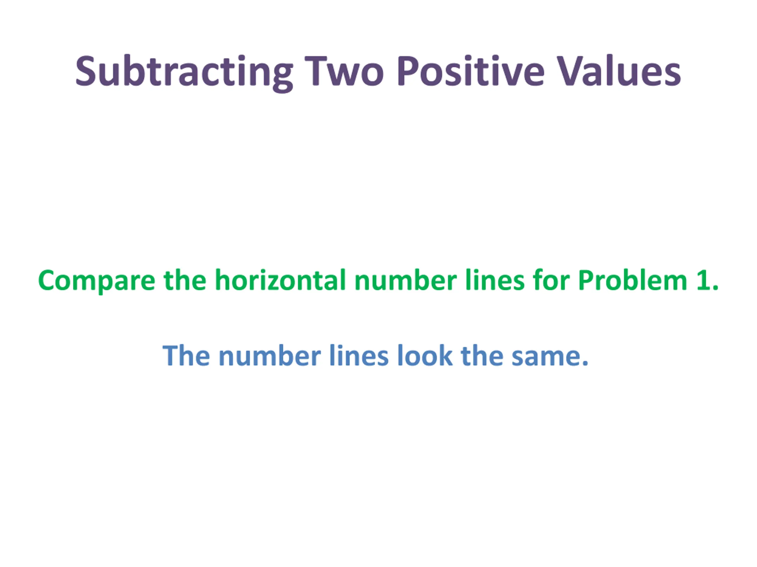 Subtracting Two Positive Values Compare the horizontal number lines for Problem 1. The number lines look the same.